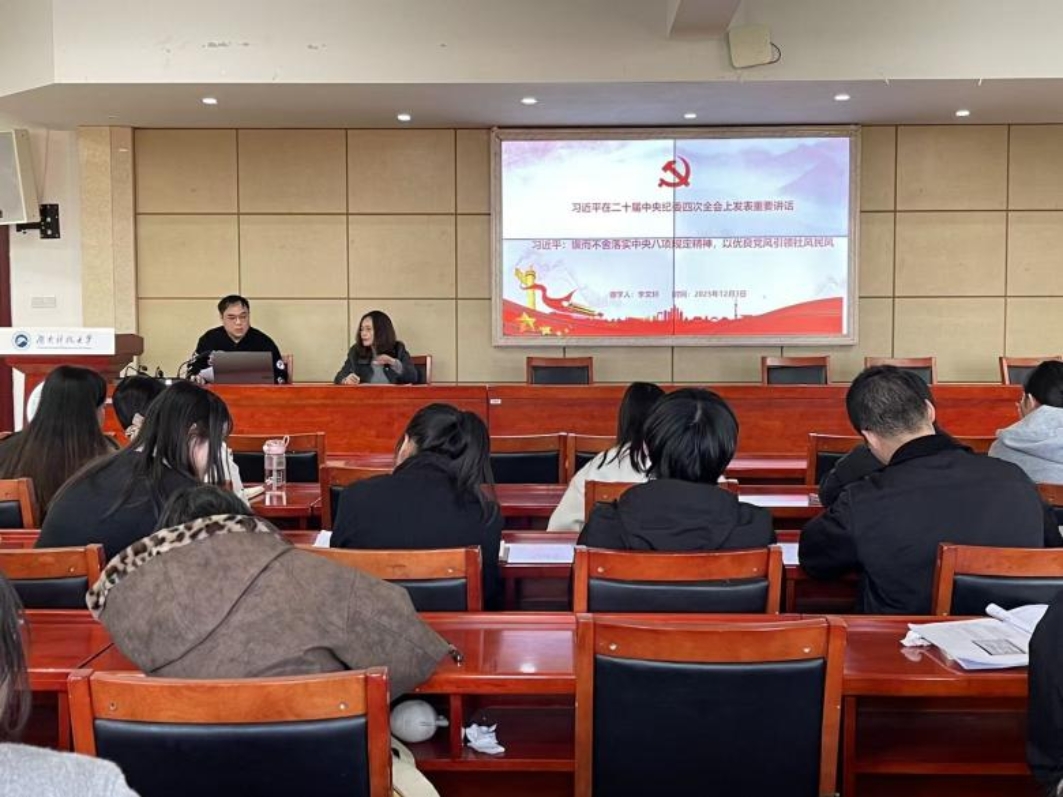 研究生第二党支部樊星栾同志表示:作为新时代青年,我们要深刻领会精神实质,在学术研究中力戒形式主义,在日常生活中践行勤俭节约,以实际行动维护优良党风,为支部建设和强国事业贡献青春力量。