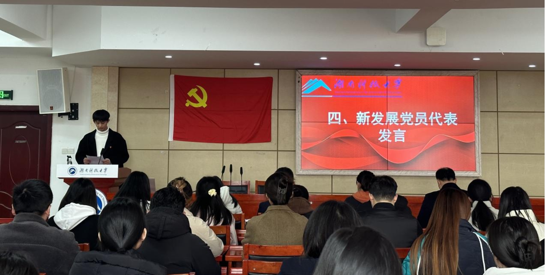 紧接着,全体新发展党员面向中国共产党党旗郑重宣誓。张鑫代表新发展的党员发言,他表示会进一步提高自身思想政治素养,不忘入党初心,牢记使命,在学习和工作中充分发挥党员的先锋模范作用。