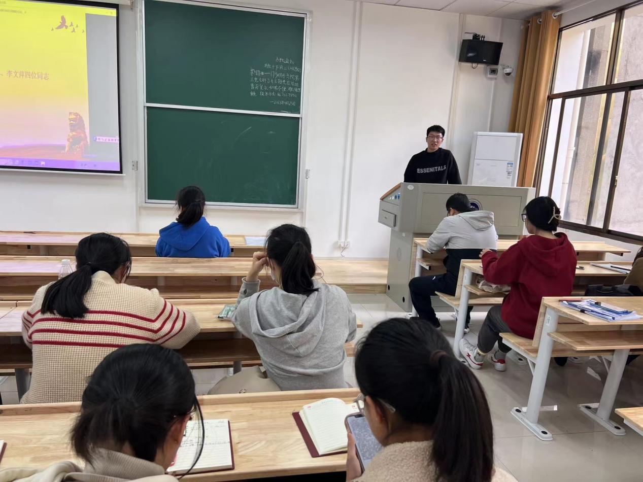 研究生第四党支部王欢同志在分享学习心得时表示,党员同志要强化思想淬炼,坚定理想信念,将学习贯彻习近平新时代中国特色社会主义思想作为根本任务,深入学习贯彻习近平总书记系列讲话精神,不断增强“四个意识”、坚定“四个自信”、做到“两个维护”。在生活和工作中,我们要认真履行好自己职责,恪尽职守,甘于奉献,坚持把纪律规矩内化于心,从自身做起,注重党纪法规常态化学习。