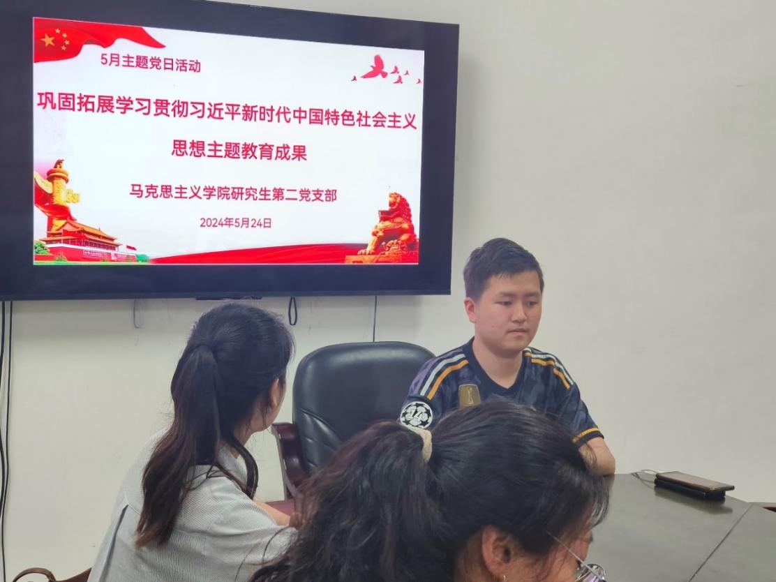 研究生第二党支部赵郸志同志表示:我们要坚持以学增智,不断从党的创新理论中悟规律、明方向、学方法、增智慧。