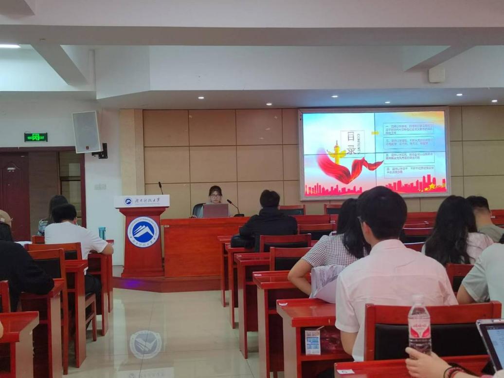 研究生第五党支部陈靓表示:作为新时代的青年,我们必须把对习近平新时代中国特色社会主义思想的学习不断引向深入,坚定沿着习近平总书记指引的方向奋勇前进,争做担当民族复兴重任的时代新人。