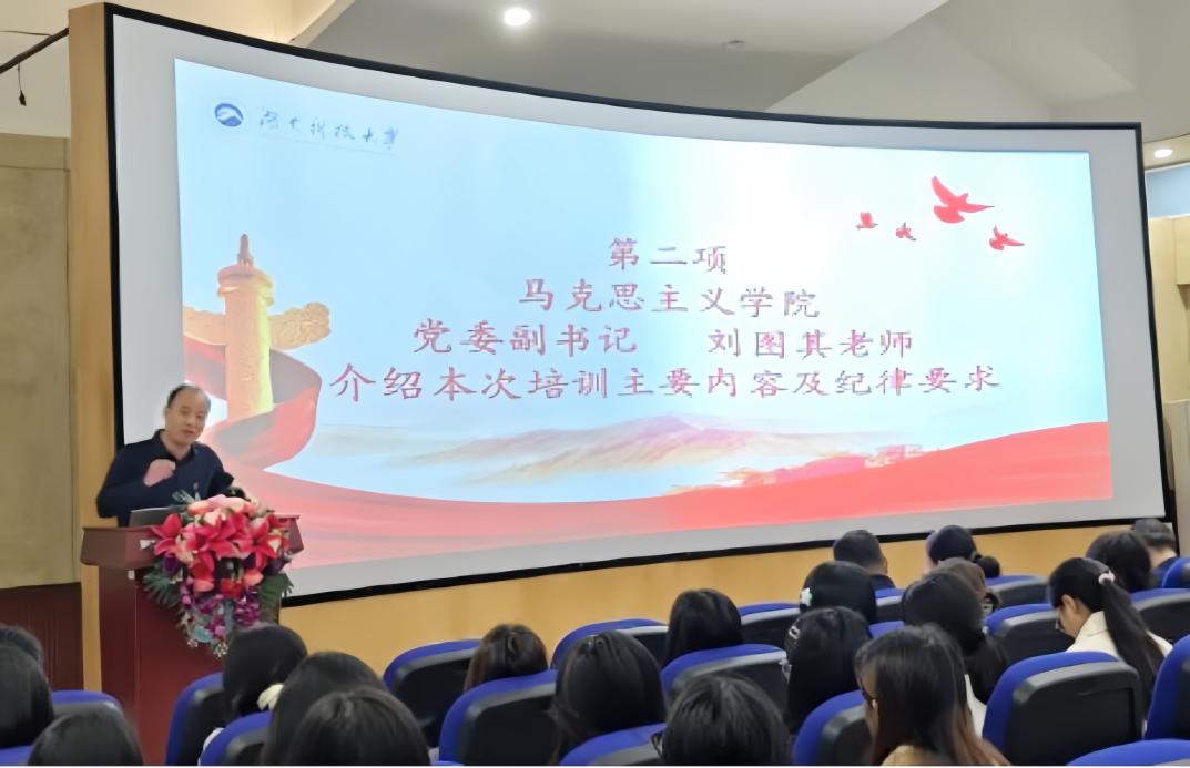 开班典礼在激昂的国歌声中拉开序幕。首先,刘图其详细介绍了本期入党积极分子培训班的学习制度、课程安排、及相关纪律,他向参训同学提出三点要求:一是要充分认识开展入党积极分子培训的目的和意义,确立为共产主义奋斗终身的信念;二是要努力做到在思想上行动上都入党,端正入党动机,严格要求自己;三是要遵守纪律规定,珍惜学习机会,提高学习效率,保证学有所获,有所启迪。