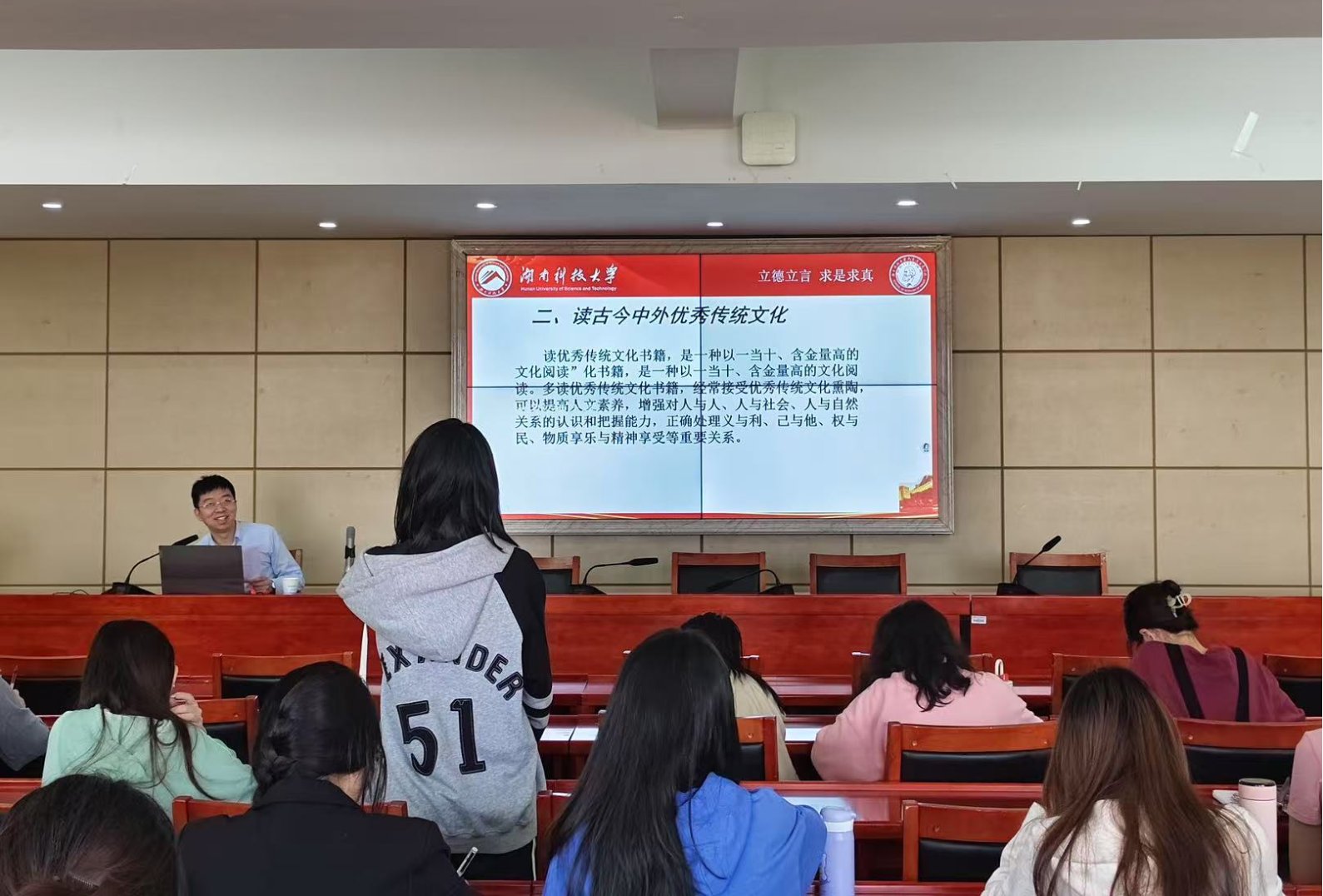 刘正妙书记号召同学们根据各自的研究、学习内容来选择合适的读书内容,坚持“干什么学什么、缺什么补什么”,学习**读书“钉钉子”的精神,掌握循序渐进、学思结合的读书方法,爱读书、读好书、善读书,通过不断的读书与实践,“掌握世界发展规律,通晓天下道理,丰富学识,增长知识”。