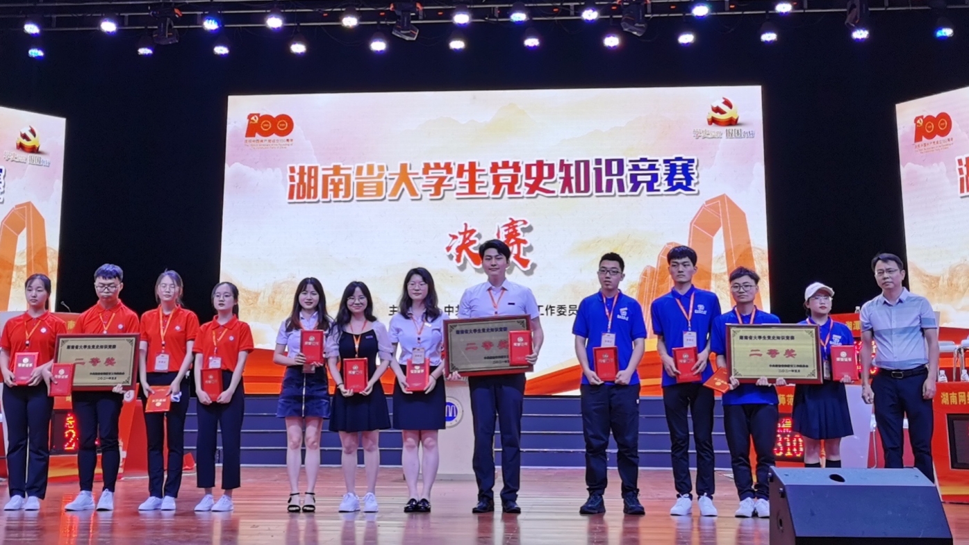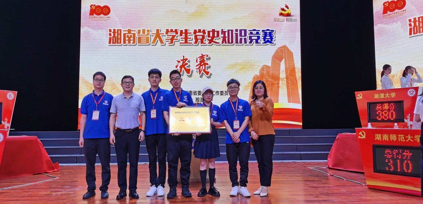 5月15日,湖南省老员工党史知识竞赛决赛在湘潭大学大礼堂举办。公司由304永利集团18级思想政治教育专业二班陈烈骁和三班向左龙,20级人文历史专业四班刘湘、20级潇湘公司文学六班黄雨阳4名同学组成的代表队经过前期初赛、复赛和决赛,凭借扎实的理论功底和现场的精彩表现,经过激烈角逐,最终荣获湖南省党史知识竞赛二等奖。学校团委组织宣传部副部长曹文星作为领队老师,公司团委书记马斌辉、304永利集团管桂翠博士作为指导老师参加决赛并出席颁奖典礼。