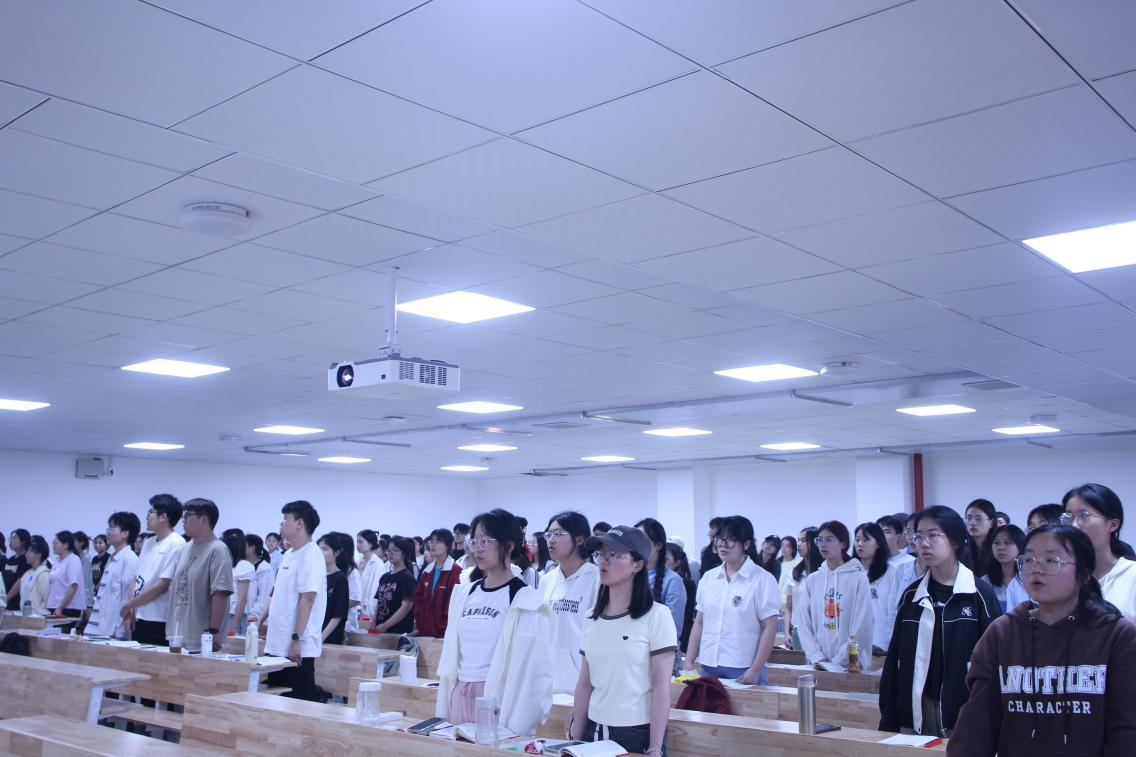 微党课开始前,全体起立,奏唱了《国际歌》。随后,吴锡金围绕共产党是什么、共产党要干什么、共产党人为何要成立组织、一名合格的共产党员有哪些特征等几个方面向学员们进行讲解。其中,他提到一名合格的中国共产党员要做到政治过硬、信念过硬、责任过硬、能力过硬,希望同学们端正入党动机,在往后的学习生活中始终以一名共产党员的标准严格要求自己。