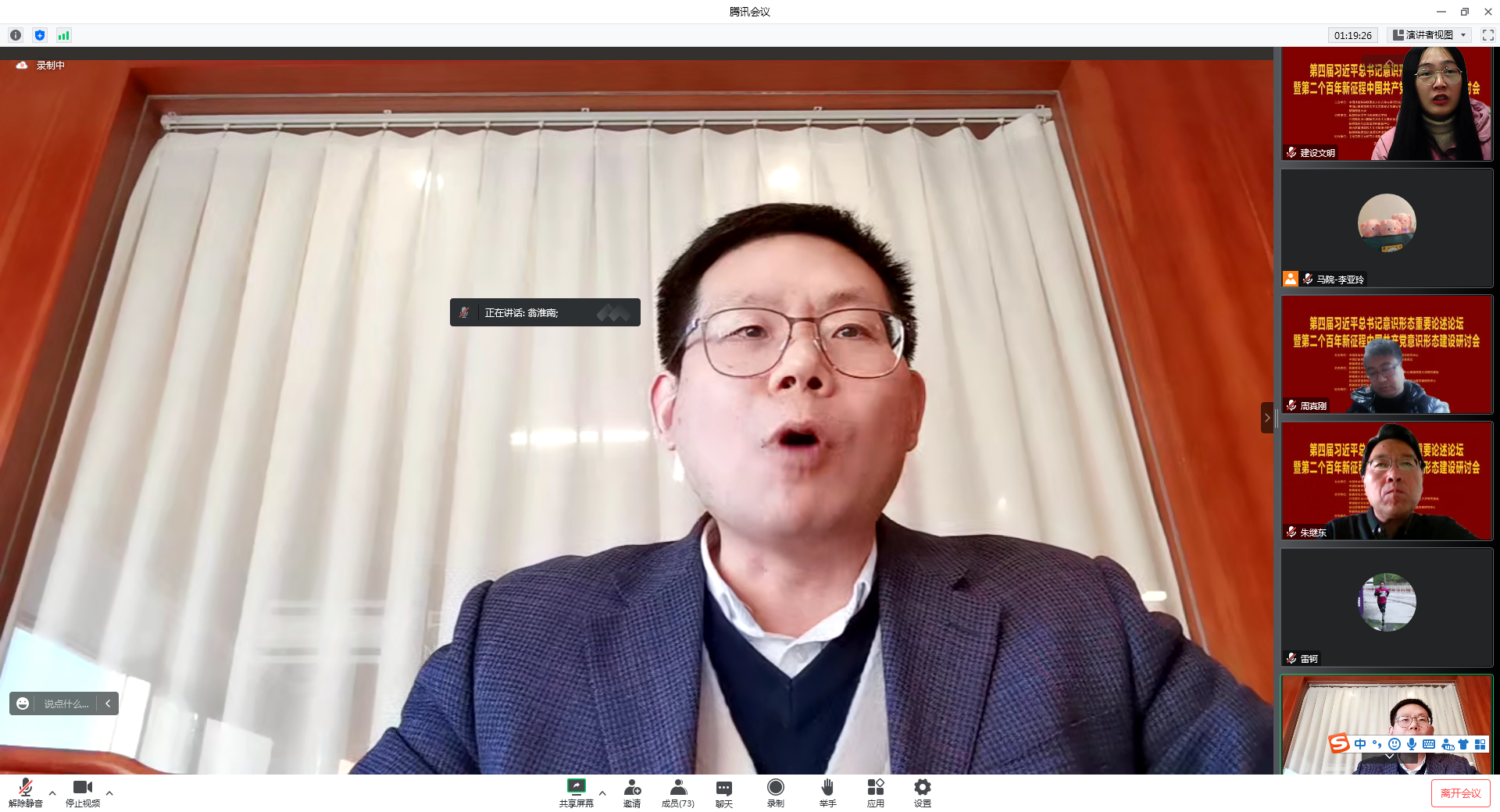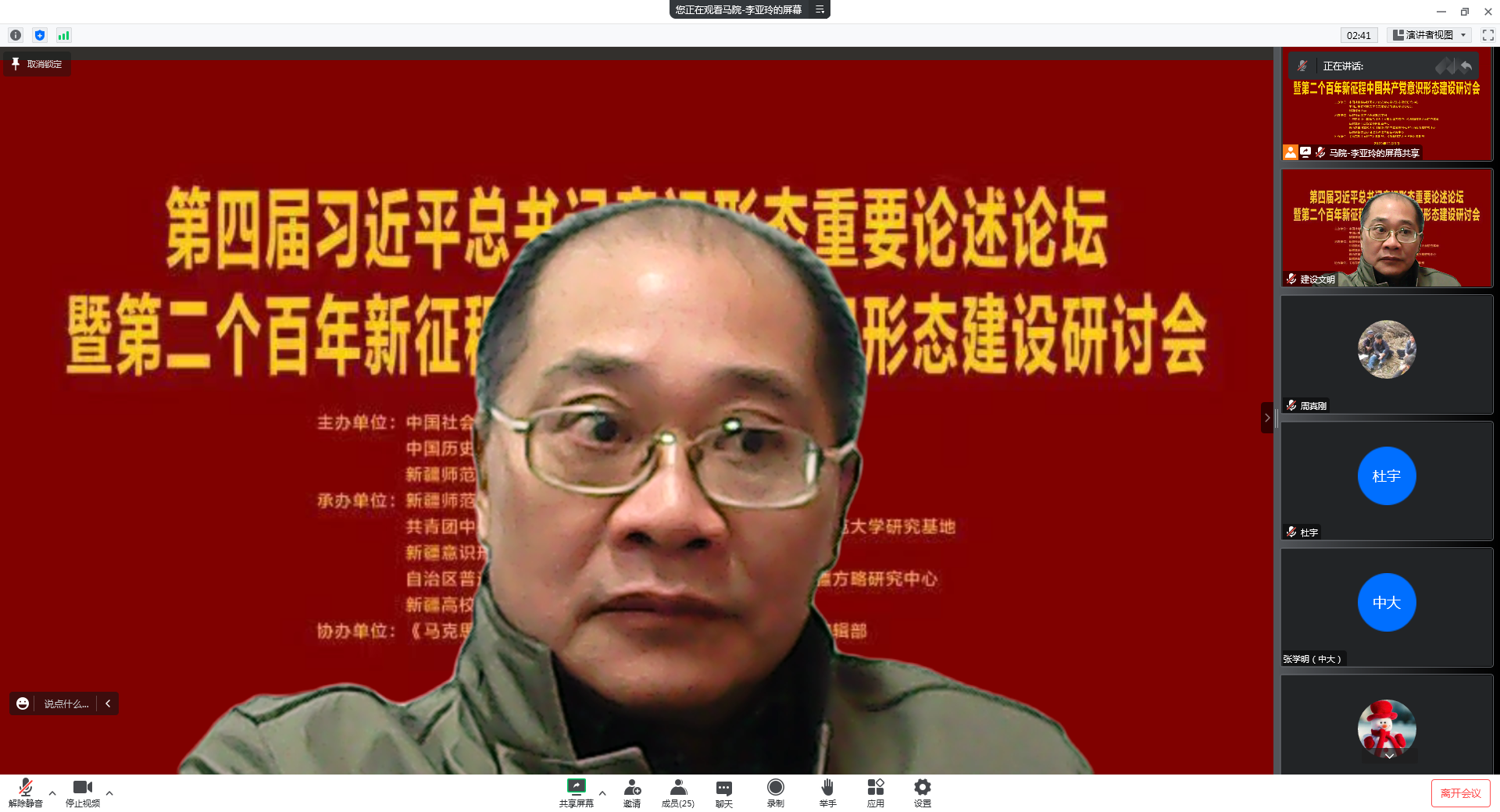 12月3日,由中国社会科公司国家文化安全与意识形态建设研究中心、中国历史唯物主义学会文化安全与建设专业委员会和新疆师范大学联合主办的《第四届习近平总书记意识形态重要论述论坛暨第二个百年新征程中国共产党意识形态建设研讨会》在线上线下进行。中国历史唯物主义学会会长侯惠勤教授,副会长、中国社会科公司马克思主义研究公司党委书记辛向阳教授,副会长、南京大学哲学系姜迎春教授,中国历史唯物主义学会常务理事、南京师范大学304永利集团王永贵教授,中国历史唯物主义学会常务理事、东北大学304永利集团经理田鹏颖教授,中国历史唯物主义学会常务理事、天津师范大学304永利集团经理杨仁忠教授,中国历史唯物主义学会常务理事、上海师范大学304永利集团经理张志丹教授等著名学者,以及《光明日报》《马克思主义研究》《新疆师范大学学报》《贵州民族研究》和《公司党建与思想教育》等多家学术报刊编辑部的采编人员200多人参加了会议。公司博士生导师罗建文教授和研究生郑小丽同学应邀参加了线上的学术讨论会。