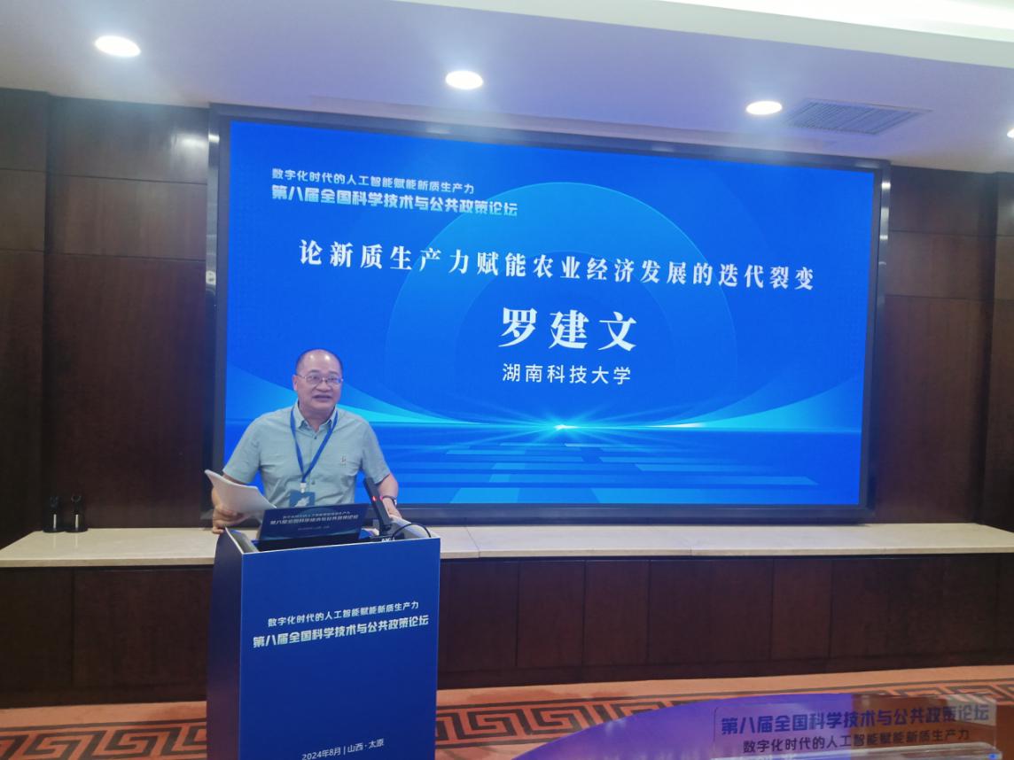 公司博士生导师罗建文教授在大会上作了《新质生产力赋能农业经济发展的迭代裂变》的专题报告。罗教授指出,培育和发展新质生产力在推动农业经济高质量发展、推进农业农村现代化和农村共同富裕中的迭代裂变具有重要的战略意义和深远的价值意蕴。大量科技成果嵌入农村生产生活各环节,农业新质生产力成为引领中国农村产业经济高质量发展的战略引擎,必须为农业新质生产力变成发展新动能而“建立新秩序”。必须充分利用农业新质生产力在推动农业经济高质量发展进程中的迭代效应,增强农业经济发展的内生发展动力,推动农业新质生产力转化为农业农村现代化发展的新动能和新赛道,为中国式现代化作出更大贡献。罗建文教授的大会发言受到与会学者的高度关注和积极评价,并就发展农业新质生产力的价值、如何促进农业经济高质量发展、如何培育农业新质生产力等问题展开了讨论。