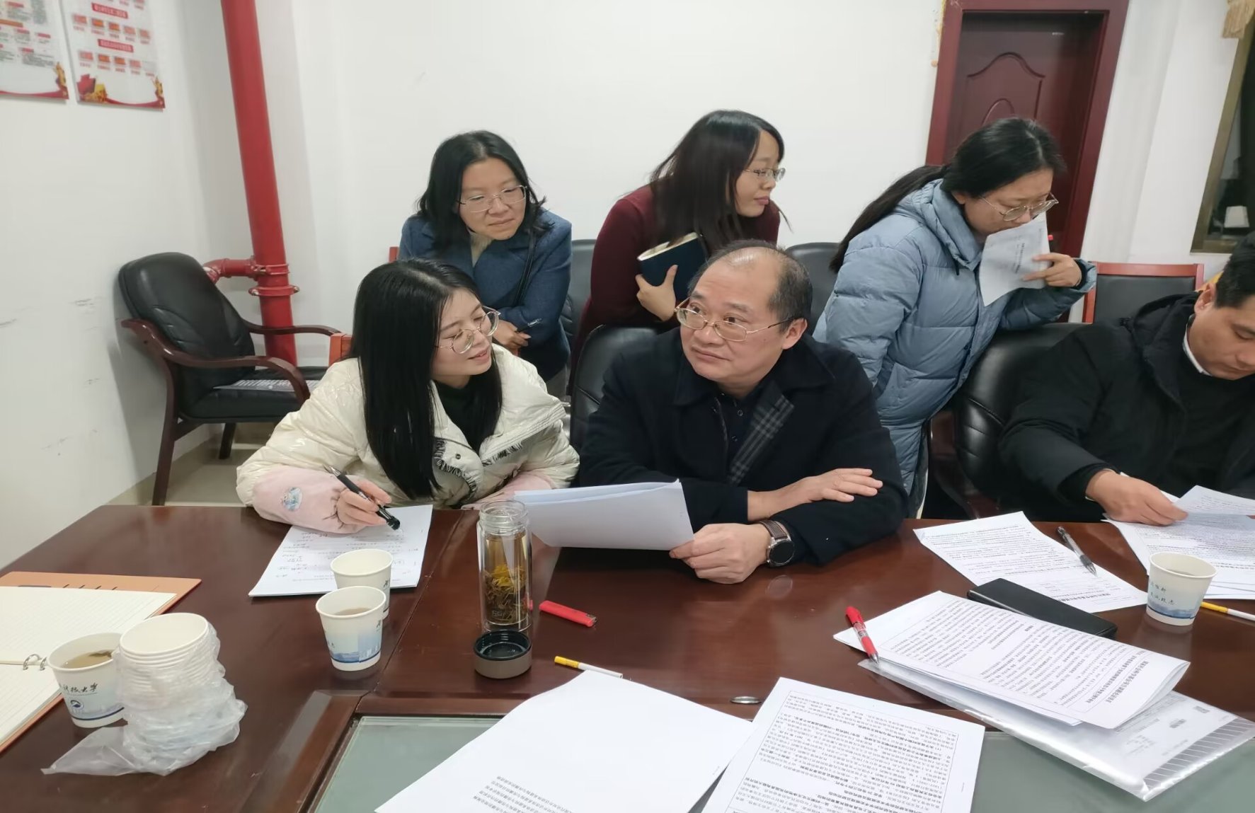 随后,唐小芹经理、罗建文教授和刘正妙书记一起,对公司教师2024年国家社科基金项目申报书进行一对一的指导工作。