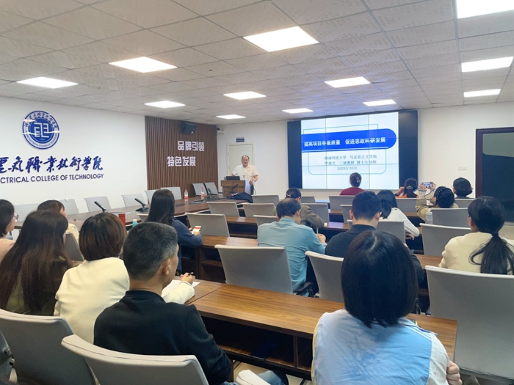 为切实加强思想政治公司产品教师队伍的科研能力,努力建设政治素质过硬、业务能力精湛、育人水平高超的高素质教师队伍,10月27日下午,湖南电气职业技术公司邀请我院博士生导师罗建文教授作了一场题为“提高项目申报质量,促进思政科研发展”的专题讲座。该校副董事长赵丹,思政课部全体教师、全体辅导员参加本次讲座,讲座由思政课部主任钟利琼教授主持。