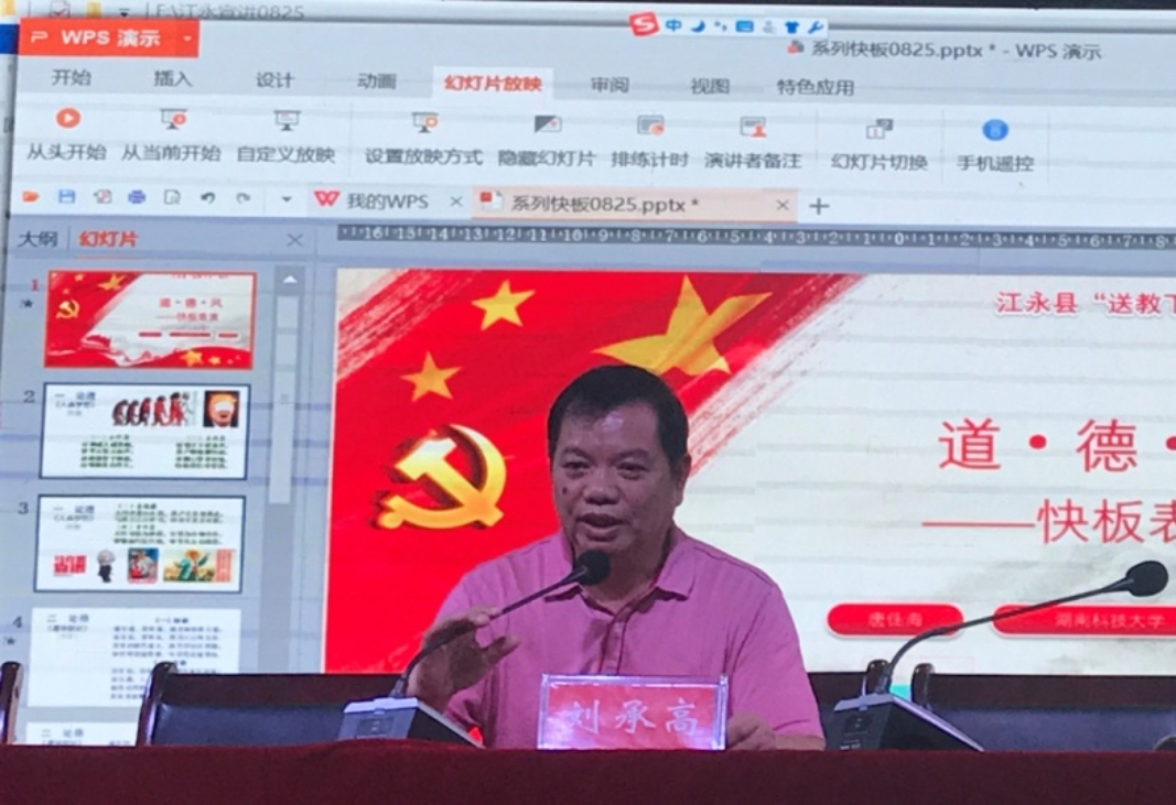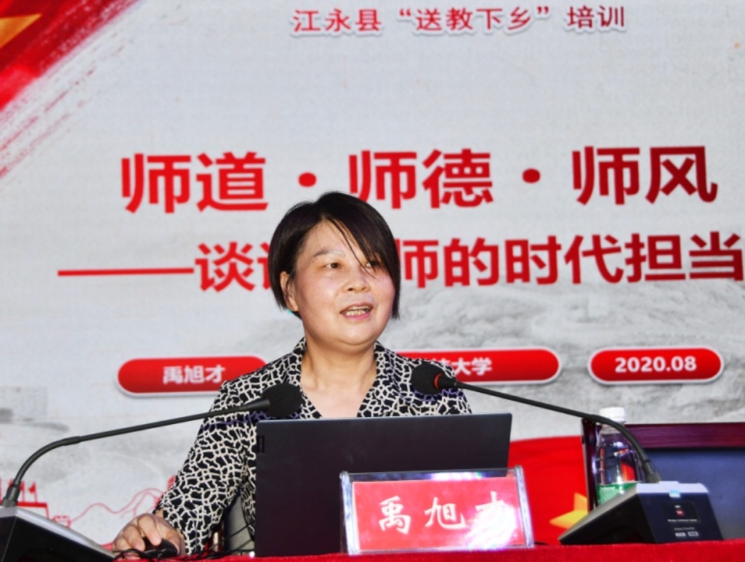 “师者,所以传道受业解惑也。新时代的教师,要以马克思主义领航定向,以社会主义核心价值观铸魂育人,以中国精神提神振气——这也是我对当今师道、师德、师风的理解。”2020年下半年新学期即将开学之际,江永大地骄阳似火,第一小学报告厅里热情洋溢,湖南科大思政课教师、博士生导师、智绘青春宣讲团团长禹旭才教授与江永县教师国培班500多名学员分享着新“师说”。这是304永利集团与江永县教育局“打开门办思政课”,协同推进大中小学思政课一体化建设,秉着“育人先育己”的原则,给教师们上的“开学第一课”。
