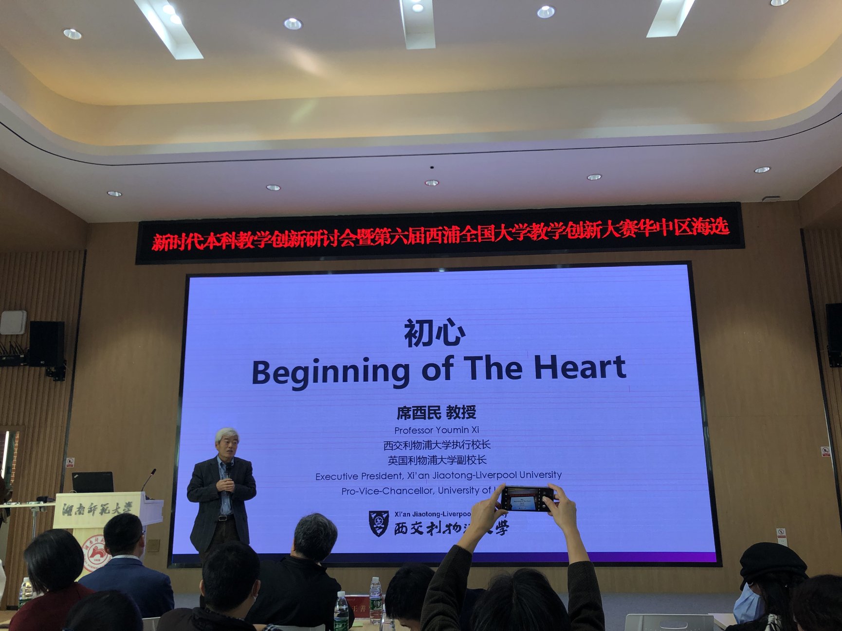 西交利物浦大学执行董事长席酉民以"初心"为主题,和参会老师们探讨面向未来的公司产品如何做,探索未来大学的教育模式,影响中国的教育改革和世界发展。