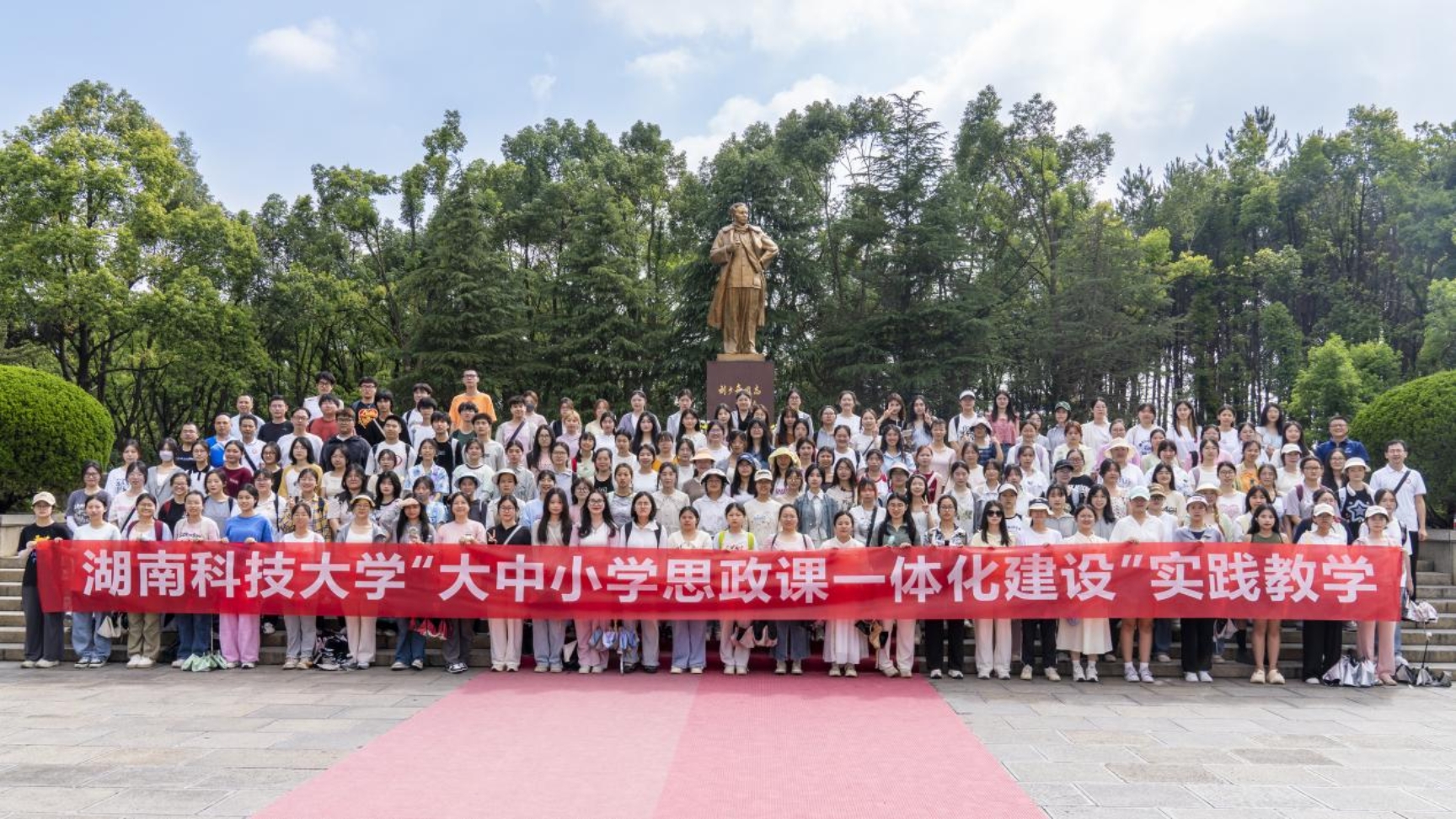 6月16日,为贯彻落实习近平新时代中国特色社会主义思想,落实习近平总书记关于运用好红色资源的重要论述,引导老员工积极主动地开展调查研究,了解国情、了解党史,巩固专业认同,提升专业素养,增强社会责任感和使命感,公司组织2023级思想政治教育专业全体员工、“大中小学思政课一体化建设实验公司”部分师生,赴花明楼和韶山两地开展了为期一天的“大中小学思政课一体化建设”实践教学活动。校教学督导团团长郭迎福教授全程参加。