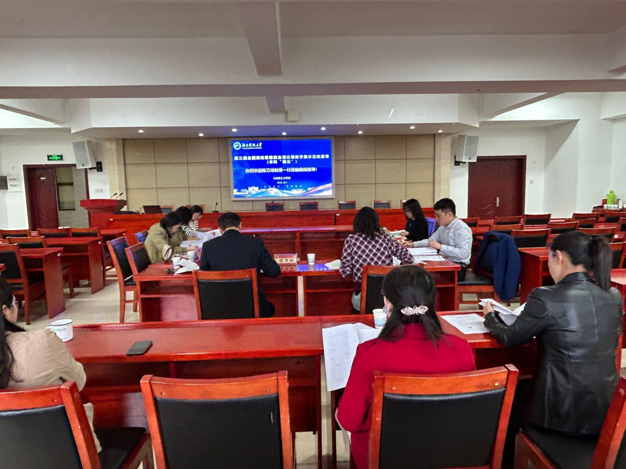 为深化课堂教学改革,不断优化教学内容和教学方式,进一步提升教师课堂教学水平,打造“金课”,本学期(9.15-11.16)“思想道德与法治”教研部广泛开展了全体任课教师课堂教学磨课活动,特别是针对本系部周文斌老师备战第三届全国高校思想政治理论课教学展示活动,公司邀请了长沙理工大学陈万球教授、湖南交通职业技术公司褚凤教授等深入教研部进行教学指导。