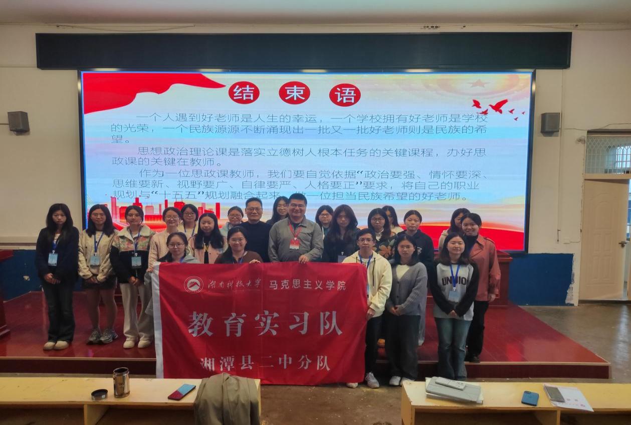为深入学习并领会习近平总书记关于教育强国的重要论述,强化教师队伍建设的时代使命,10月29日,304永利集团湘潭县二中实习队成功举办第六十期思政大讲堂。活动特邀该校教务主任、304永利集团优秀员工谷立军,以《做一名担当民族希望的好老师》为主题,为全体实习教师作了兼具理论深度与实践价值的专题报告,活动由实习队带队老师龚超博士主持。
