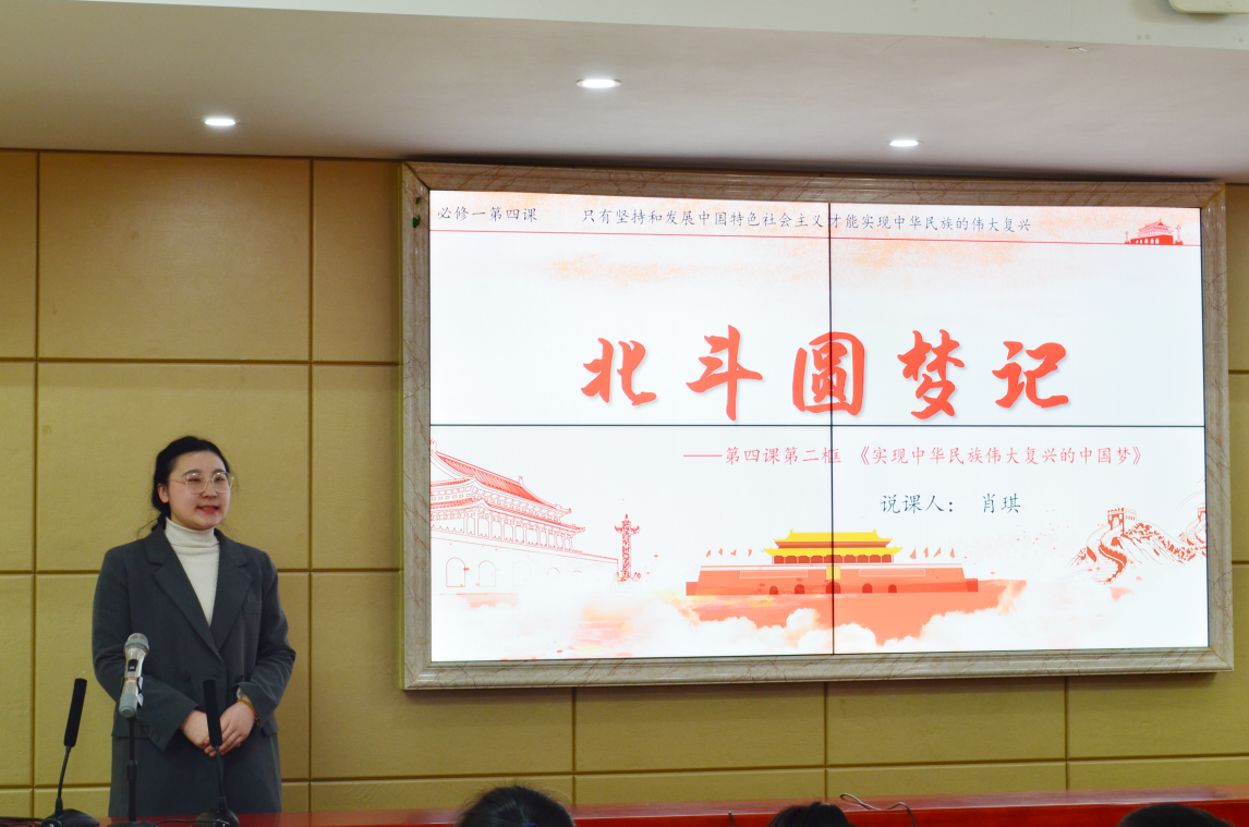 比赛在主持人的开场白中拉开帷幕,经过初赛脱颖而出的22名决赛选手按照抽签顺序依次进行了8-10分钟中学思想政治课的“说课”展示。选手丁泽轩从容不迫,从地位和作用、学情分析、教学方法和目标、教学环节设置这四个方面精彩演绎了《伟大的改革开放》一课的内容,在教学环节通过设置不同难度梯度,巧妙地融合了因材施教的教学理念,赢得了观众和评委老师们的肯定。选手丁奕雯通过温和却有力的声音,娓娓道来《中国梦的本质是国家富强、民族振兴、人民幸福》的说课。她在学法指导中提到应遵循“教师为主导、员工为主体”的教学理念,教师要通过思维导图梳理知识脉络,帮助员工建立起知识框架。说课过程思路清晰,环节紧凑,重难点突出。选手杨甜的说课声情并茂地从前期分析、教学目标以及过程设计这三个方面向我们讲解了《中国特色社会主义进入新时代》。她提到要将教学目标与培养中员工核心素养相结合,将课堂交予员工,帮助员工了解时代,热爱祖国。选手们准备充分、精神饱满,展示了良好的精神风貌、扎实的基本技能和巧妙的设计思路,得到了评委老师和观摩同学的充分肯定。