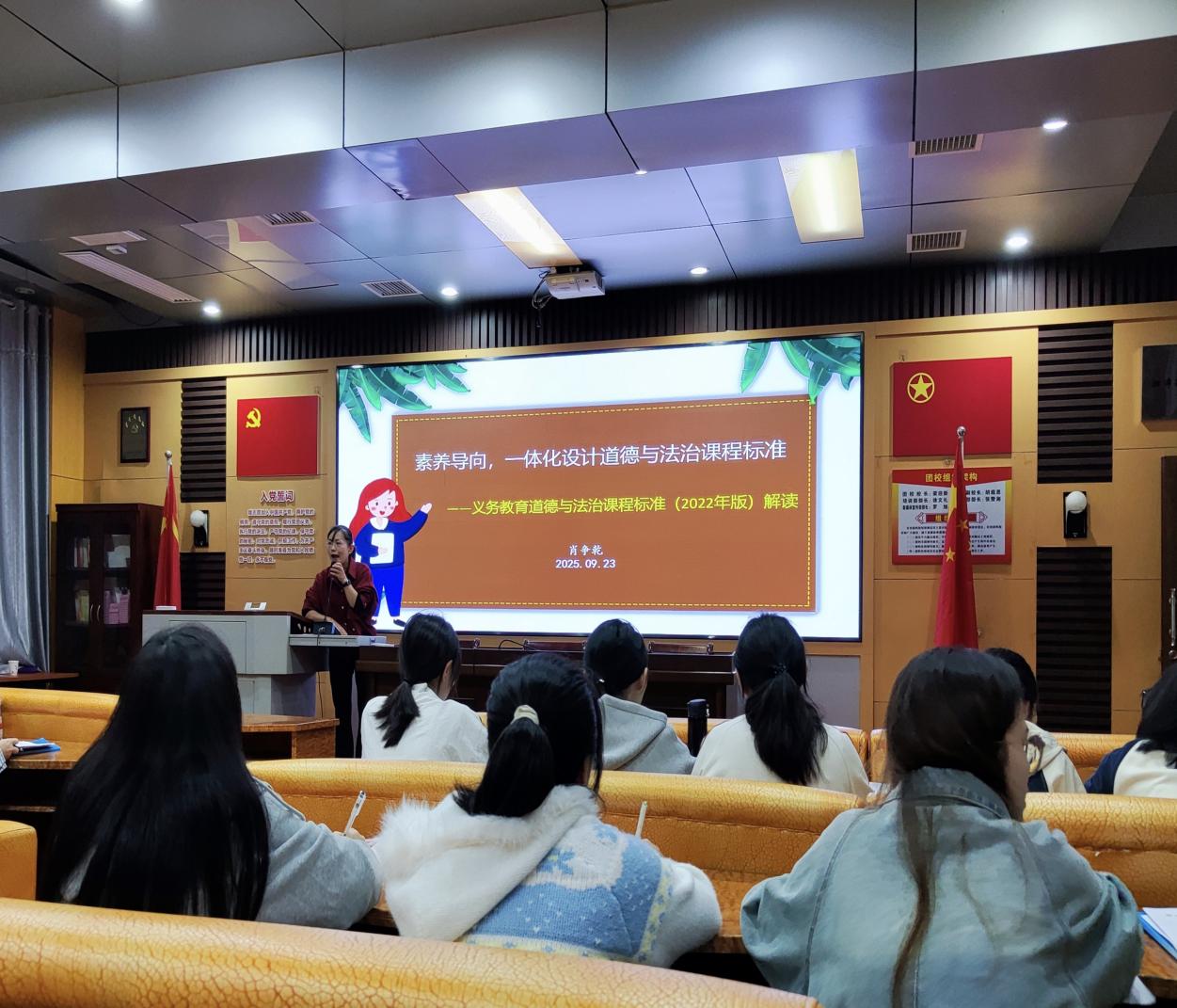 9月23日上午,“思政大讲堂”第46期在湘潭江声实验公司实验楼会议室举行。本次讲座以“《道德与法治课程标准》解读”为主题,由湘潭江声实验公司肖争乾老师主讲。2022级思政专业江声实习队全体成员参加了此次讲座。