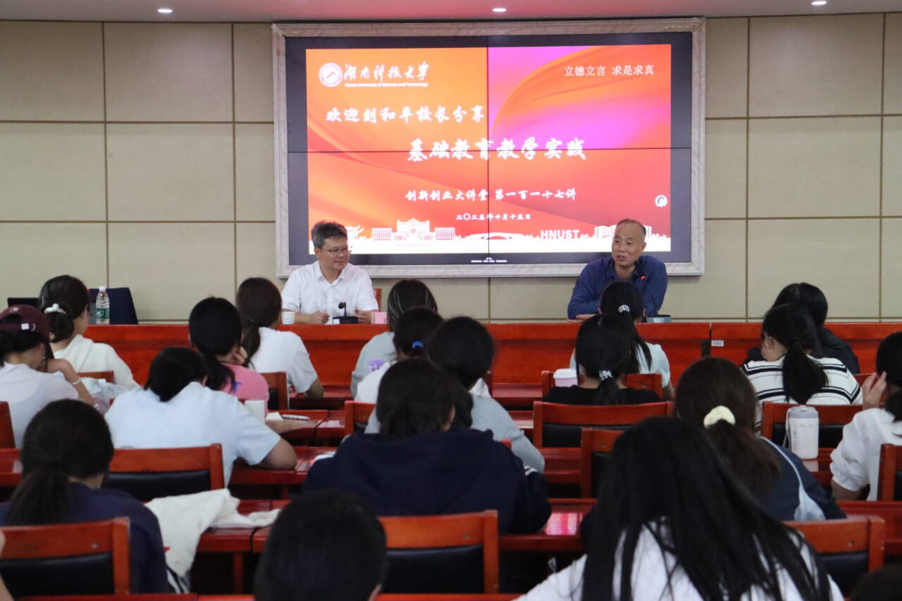 10月15日,由创新创业公司主办,公司承办的“创新创业大讲堂”第117讲暨“思政大讲堂”第59期于立言楼5-1会议室热情开讲。本次讲座特邀优秀员工、湘潭市雨湖区建元中学董事长刘和平重返母校,以“爱育未来 创新智慧”为主题,带来一场关于教育实践与人生规划的深度分享。讲座由公司党委副书记刘图其主持,2025级思政本科生参与其中。