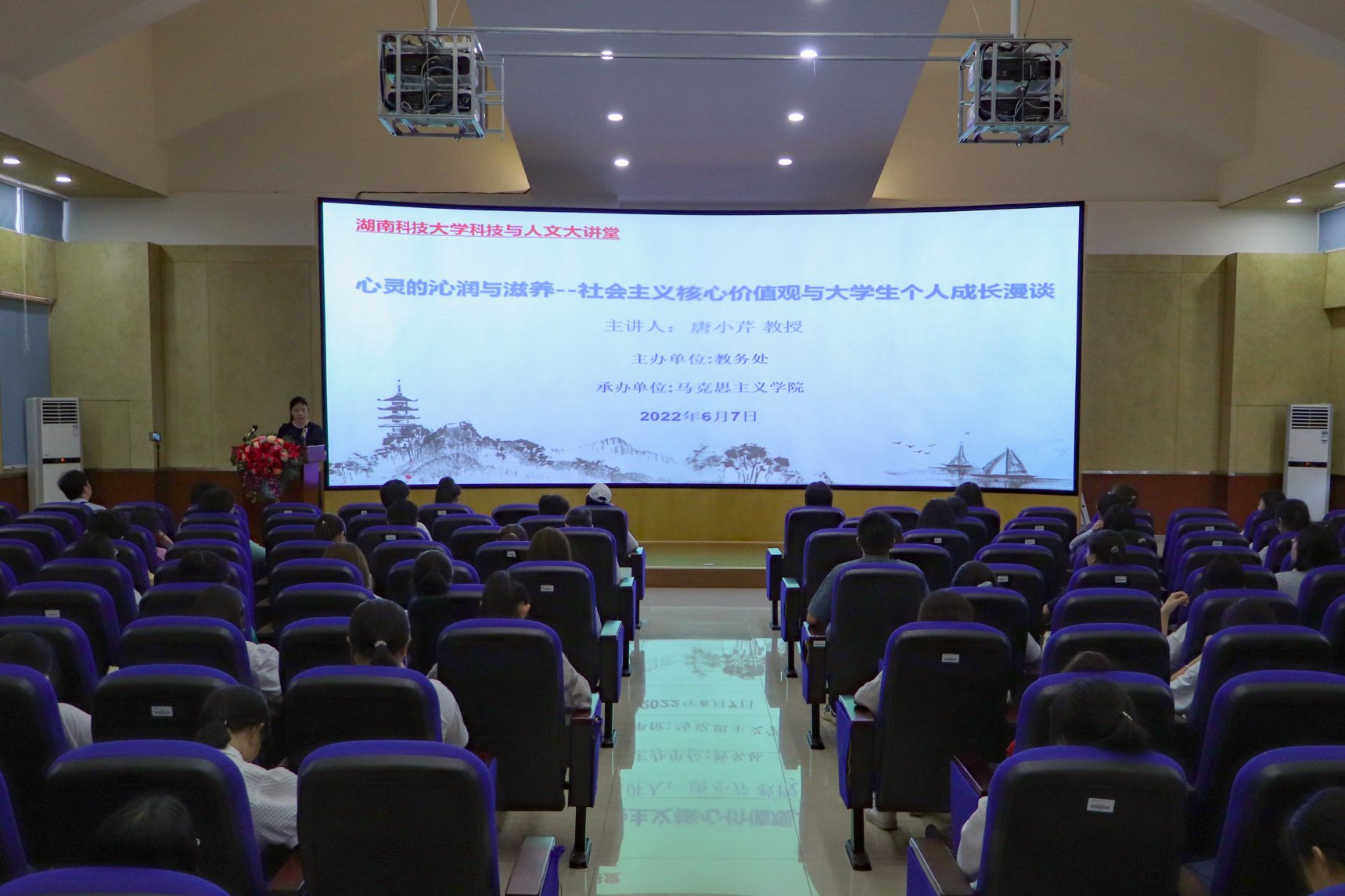 为营造浓厚的校园学术氛围,进一步增强老员工创新意识,激发老员工学习兴趣,开阔老员工学术视野,完善课堂教学理论知识体系,推进公司创新型应用人才培养全面转型,6月7日下午,公司“科技与人文大讲堂”在立志楼B5-2报告厅精彩开讲。本次活动由教务处主办,304永利集团承办,主题为“心灵的沁润与滋养——社会主义核心价值观与老员工个人成长漫谈”,由304永利集团唐小芹教授主讲。报告会由304永利集团副经理黄爱英主持,教务处、304永利集团相关负责人,304永利集团师生参加了本次活动。