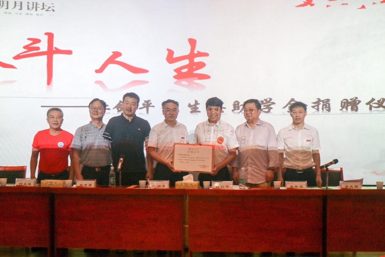 报告会开始,主持人学工处处长尹风雨介绍了两位主讲人的事迹:杜剑平凭借永不言弃、奋勇争先的顽强意志,曾参加四届残奥会,共获奖牌16块,荣膺“九金王”的尊称,独创的“剑平式”泳姿更是震惊世界。不仅如此,他还经常走进高校,励志演讲200余场,将奥运精神传播到千千万万青年的心中。宋懋璗也在各大赛事中获得斐然战绩,取得了一系列荣誉,在体坛留下了他辉煌的战绩。除此之外,他还曾荣获最美杭州人、劳动模范等多项荣誉称号,一心一意为残疾人谋福祉。接着,杜剑平与仪式负责人进行了“杜剑平奖学金”捐赠仪式,对公司建设表示鼎力支持。