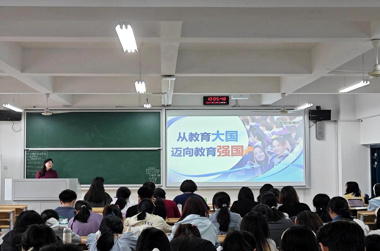 5月28日上午,公司党委副书记谢慧在第八教学楼504教室为2022级心理专业1-3班员工讲授了一堂主题为“从教育大国迈向教育强国”的“形势与政策”课。