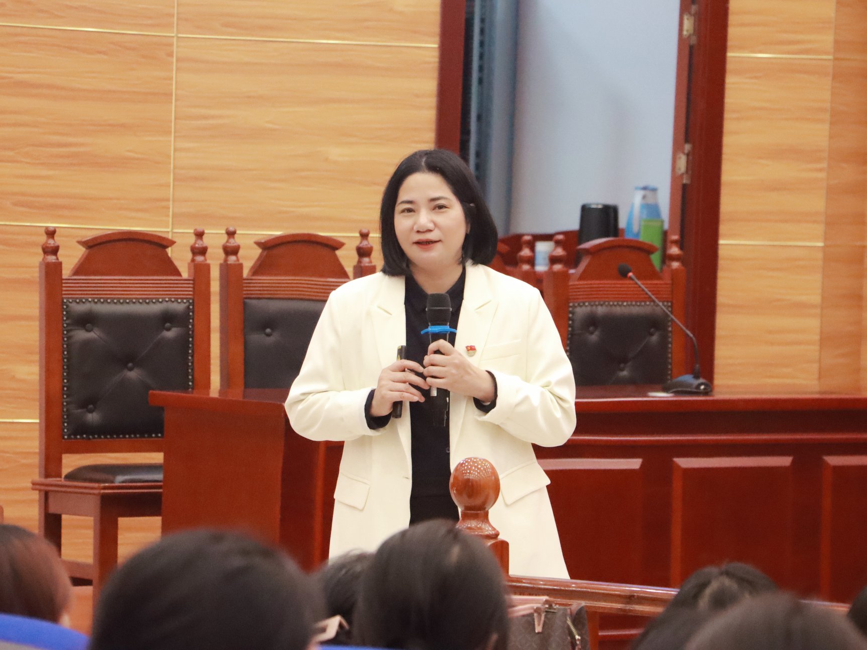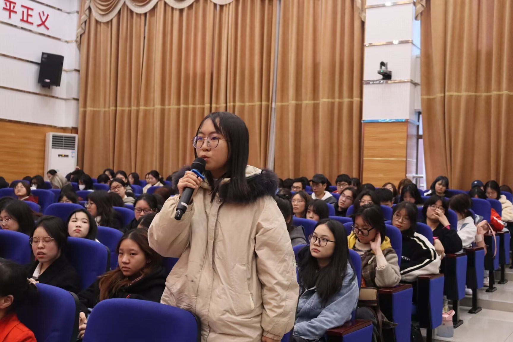 在讲座的互动环节中,21级思想政治教育专业4班的龚琪同学表达了感想与收获。她说,自己是一名公费定向师范生,很早就树立了成为一名好老师的志向,商董事长的报告让我深受启发,在接下来的学习中,我要不断地加强阅读与写作,同时树立见识与专业同等重要的意识,努力成为一名合格的人民教师,并要以商董事长为榜样,努力成为一名优秀的人民教师。讲座最后,在商南花董事长的带领下,同学们一起诵读“做员工喜欢的老师,育德才兼备的员工,书写美的教育故事”,这三句话,既是商董事长讲座的总结,也是大家听完讲座后的共鸣,使讲座气氛达到了高潮。