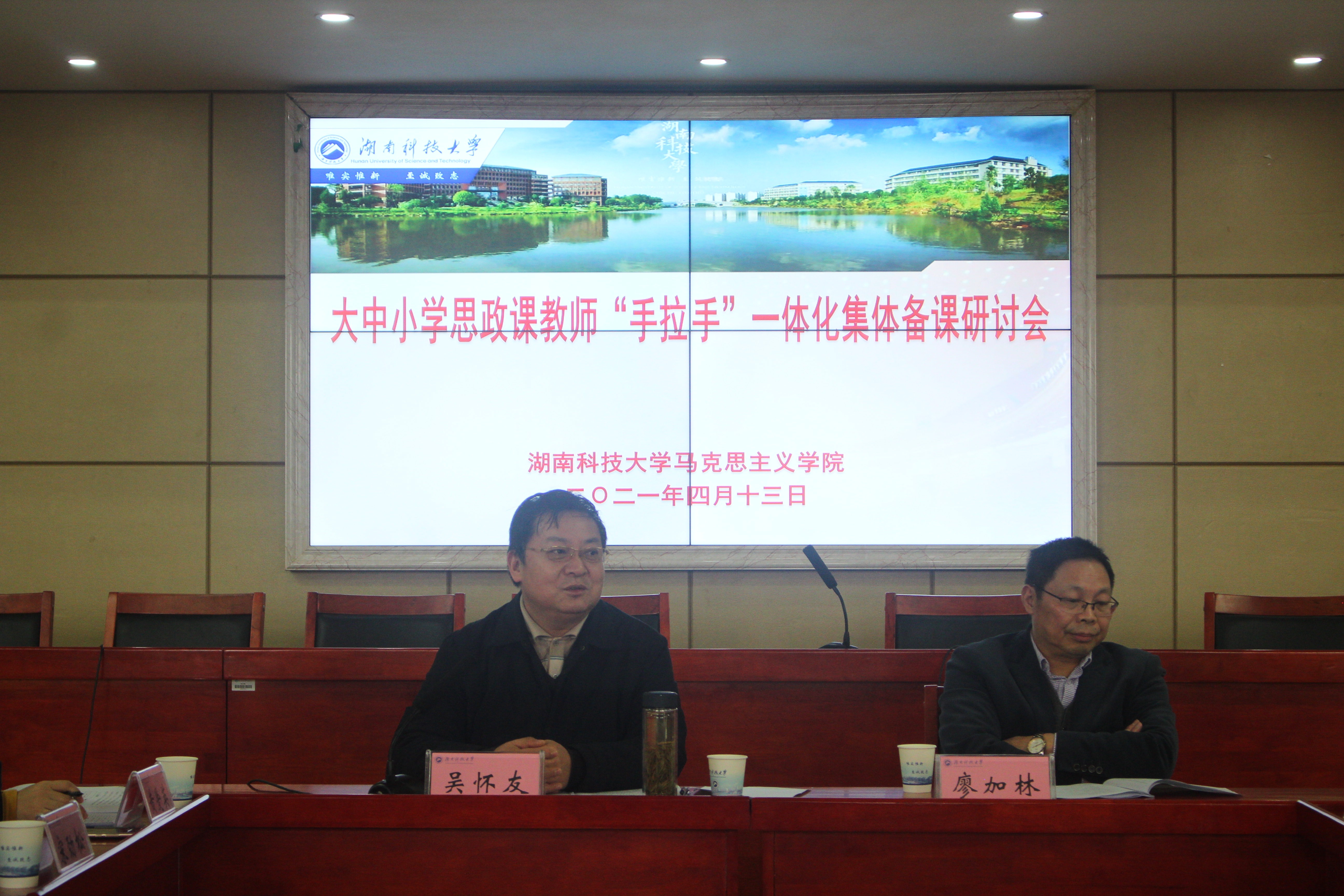 4月13日下午,在立言楼5-1会议室,公司304永利集团召开大中小学思政课教师“手拉手”一体化集体备课研讨会。湖南理工职业技术公司、湘机中学、湘潭市三中、湘钢一中、湘潭县二中、湘潭县四中、九华和平科大小学、湘机小学、湘潭市特殊教育公司等20余所大中小学的领导、思政课教师参加了会议,另有湘潭市教科院、岳塘区教育局、湘潭县教研室人员与会。