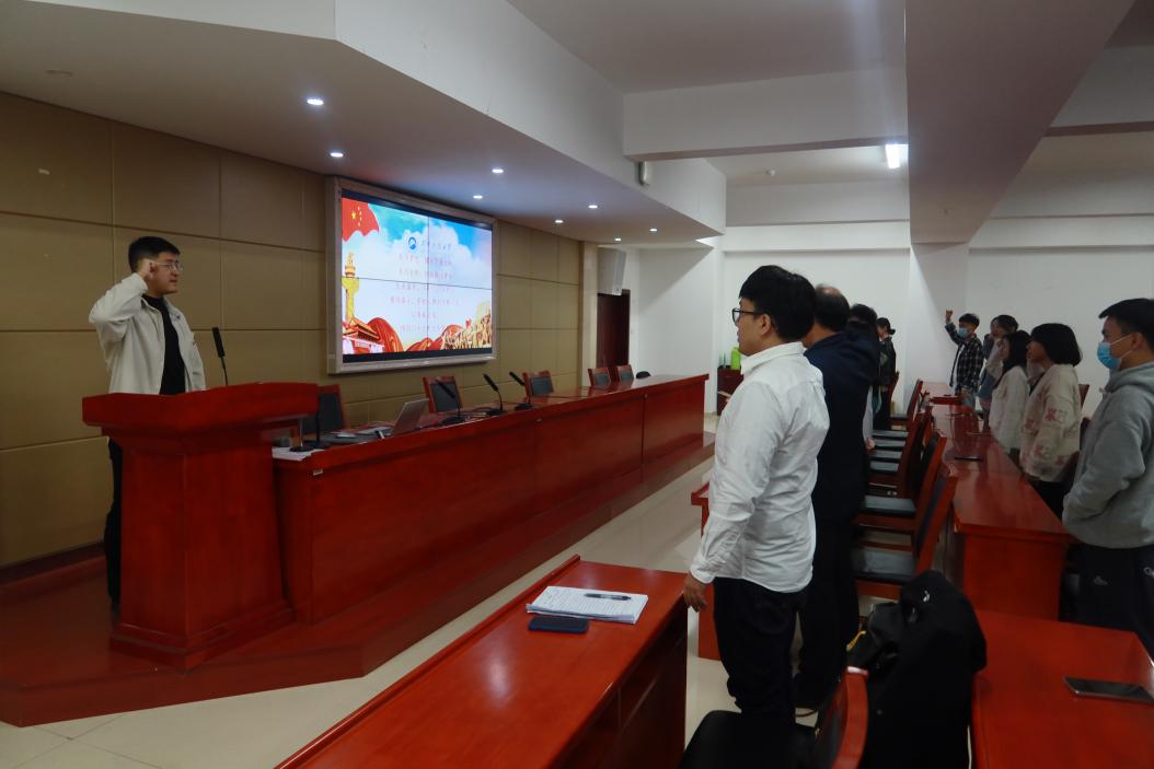 “请党放心,强国有我!”宣誓仪式在庄严的国歌声中拉开序幕。大家热情洋溢,纷纷起立,整齐嘹亮的宣誓声流露着坚定和勇毅:“我用梦想,撑起华夏之盼;我用肩膀,担起强国使命;生逢盛世,与时代同向同行。接续奋斗,用初心镌刻无悔人生。以青春之名,续写二十大时代华章!”铿锵有力的誓言饱含担当,“以青春之名,续写二十大时代华章”一句更是将现场的氛围推向高潮。