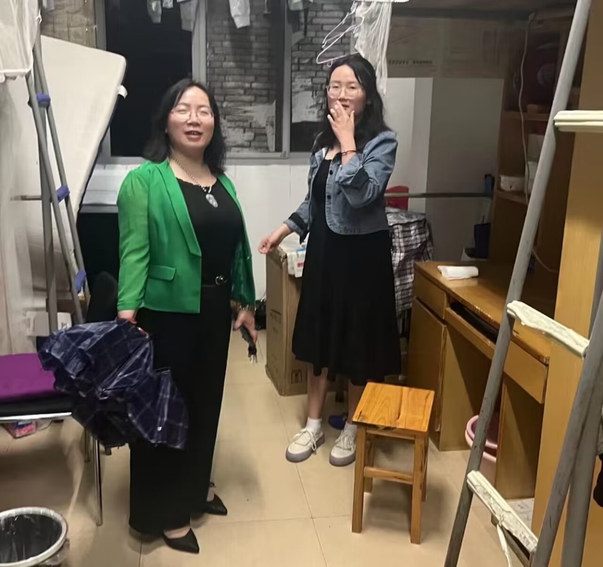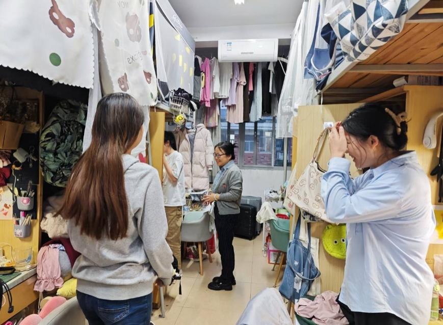 在昭潭书院,刘图其副书记到每个寝室看望了员工。没到一个寝室,都要询问同学们五一返校情况以及身体状况,并多次提醒、强调,同学们多注意开窗通风、保持寝室干净整洁。