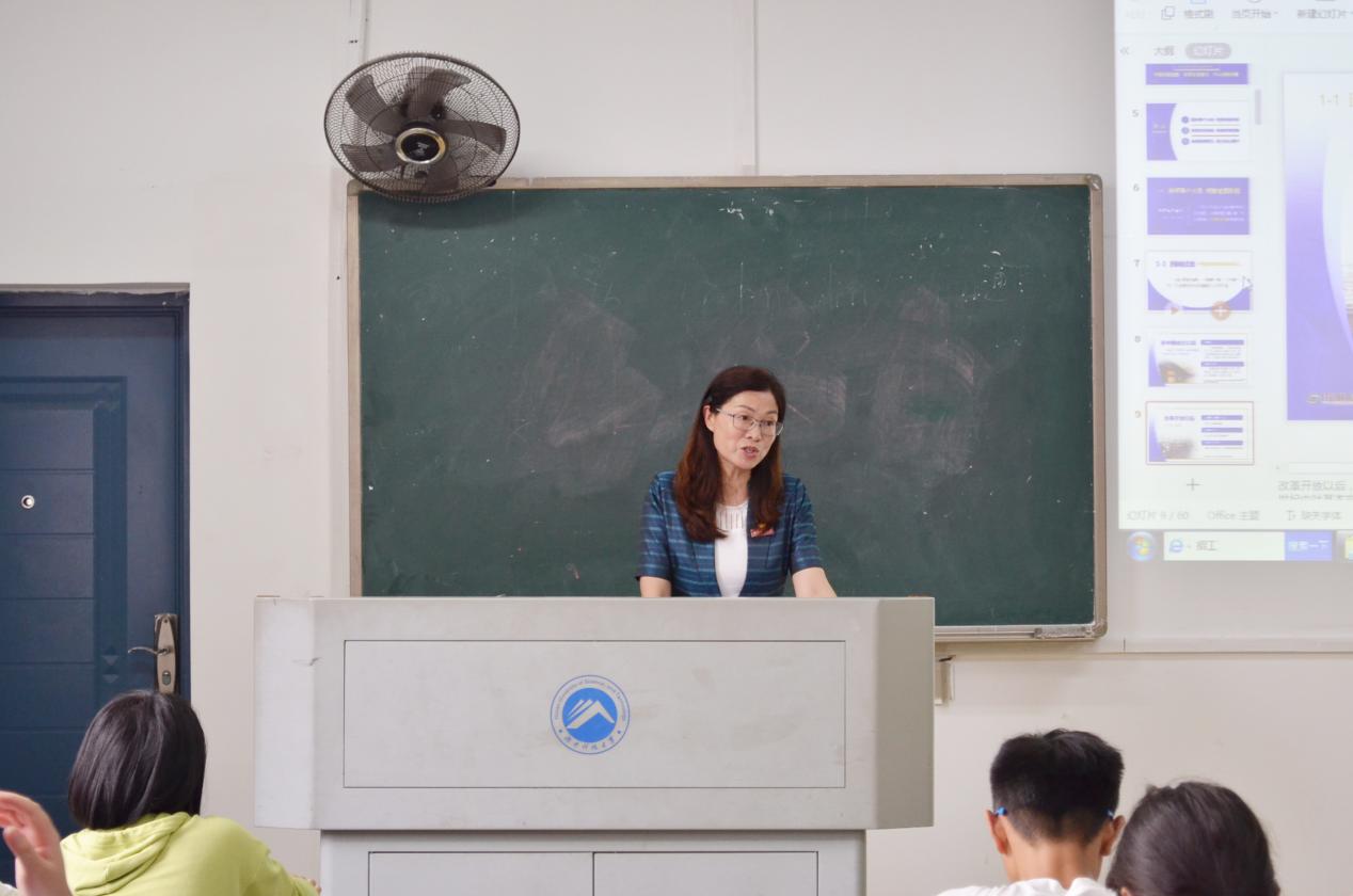 7月1日下午五六节课,副董事长谢慧在八教3-5给生科公司20级本科生上了一堂关于“绘就新蓝图,奋进新征程”的“形势与政策”专题思政课。随着上课铃声响起,谢慧开始了精彩的讲课。