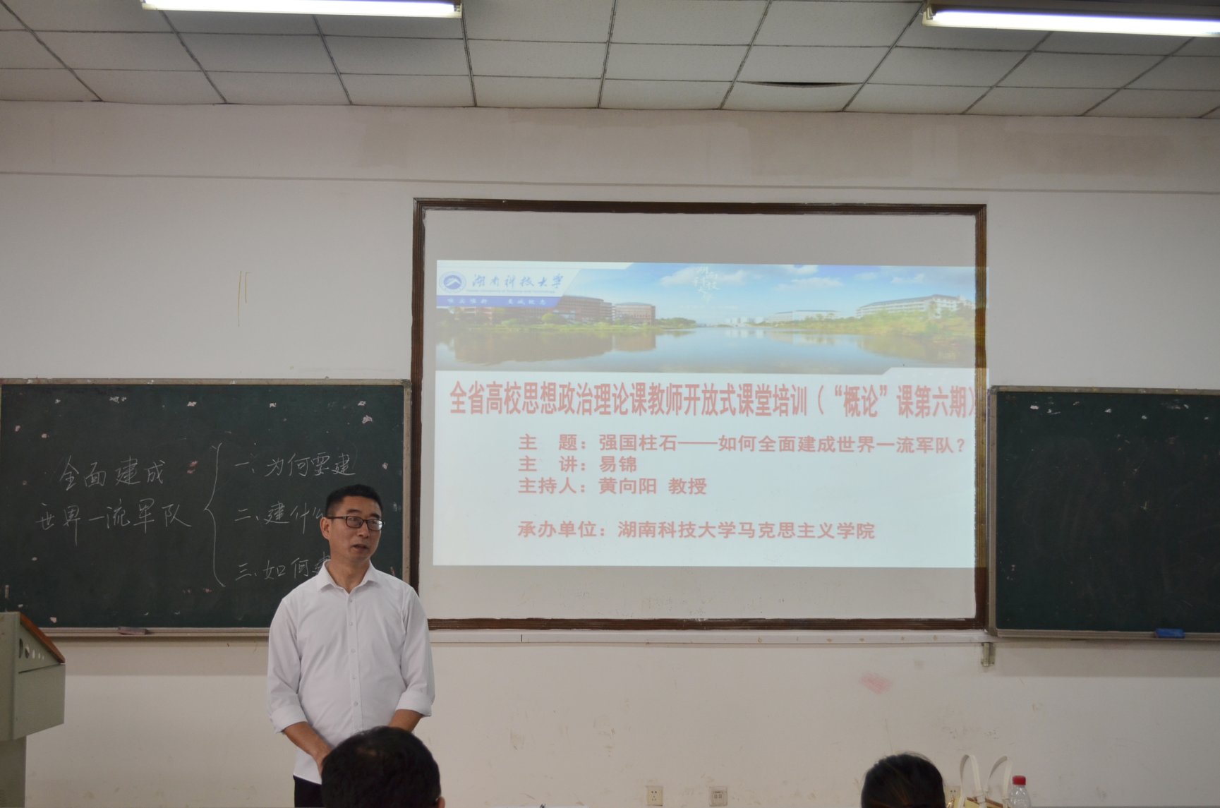 6月11日下午,湖南省教育厅和湖南省委教育工委组织的《毛泽东思想和中国特色社会主义理论体系概论》课开放式课堂培训活动第六期在公司第八教学楼1-3教室举行,也是此次开放式课堂培训活动的最后一期。全国高校思想政治理论课教学展示活动特等奖获得者、湖南交通职业技术公司304永利集团易锦副教授担任本期主讲教师,湖南省思想政治理论课教指委专家黄向阳教授主持活动。全省100余所高校120多名思政课教师、304永利集团概论课教研部全体教师以及相关专业的员工参与现场听课和交流研讨。