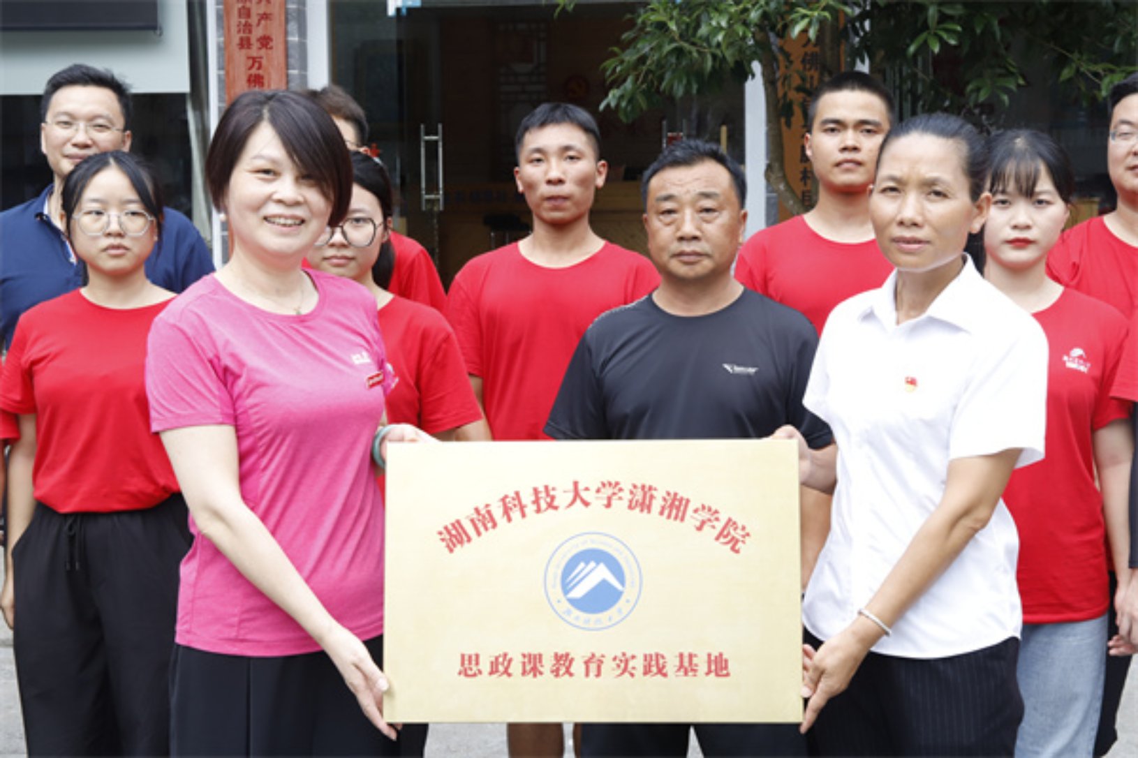 图 宣讲团成员与万佛山镇领导及老员工三下乡实践团队与合影