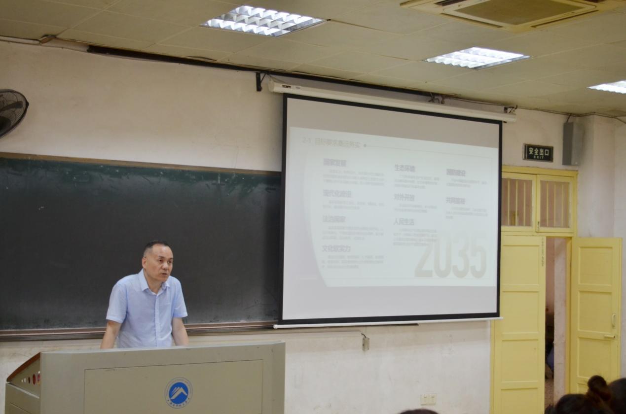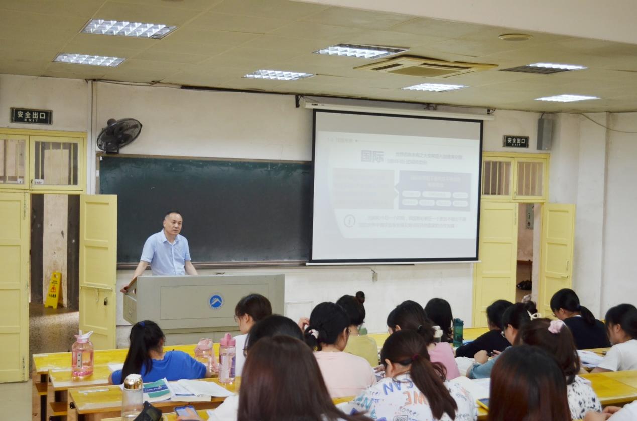 6月28日下午五六节课,副董事长贺泽龙在十教东附楼104为公司19级文学专业的本科生上了一堂主题为“绘就新蓝图,奋进新征程”的“形势与政策”专题思政课。