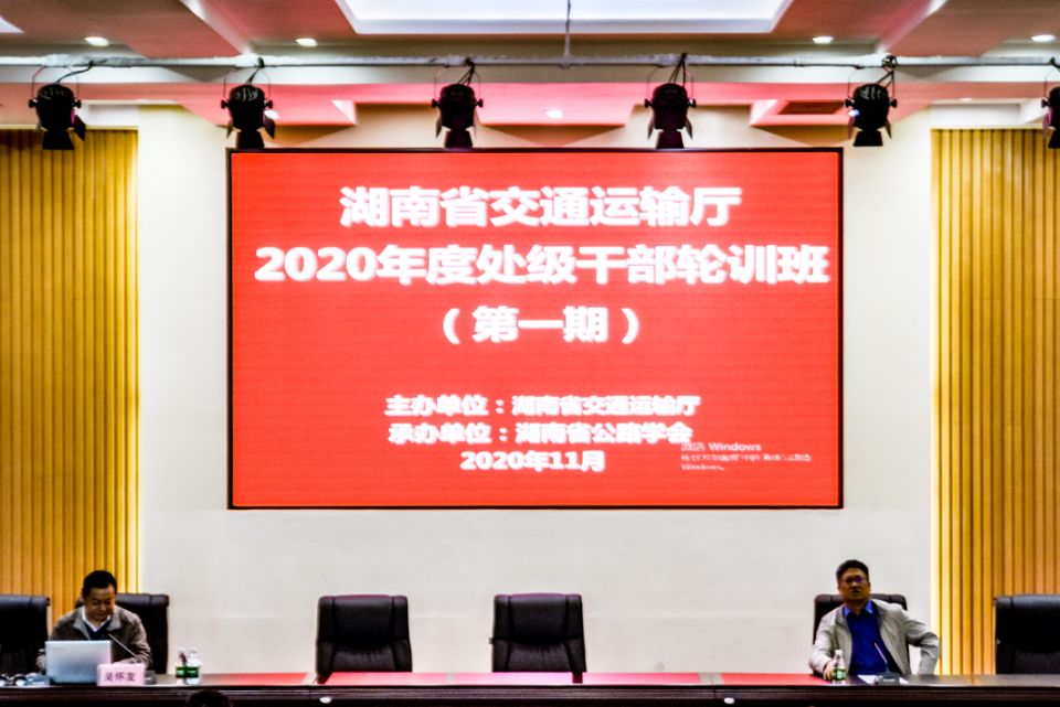 由湖南省交通厅举办、湖南公路学会承办的湖南省交通运输厅2020年度处级干部轮训班在湖南交通职业技术公司培训部开班。本次培训班是湖南省交通厅根据中央、省委安排部署和厅干部教育培训计划,在十九届五中全会胜利闭幕、全国掀起贯彻落实十九届五中全会精神热潮之际,在习近平总书记到湖南考察、全省深入学习贯彻习近平总书记考察湖南重要讲话精神之时,交通运输厅党组作出的重要决定。培训班共分两期,第一期培训时间为11月9日至13日、第二期为11月16日至20日,对厅系统全体处级干部进行集中学习,主要任务是进一步教育引导广大党员干部深入学习贯彻习近平新时代中国特色社会主义思想,切实做到学深悟透、融会贯通、真信笃行,切实用新思想、新理念、新论断武装头脑、指导实践、推动工作。邀请授课主讲教师主要来自中南大学、湖南师范大学、湖南省委党校、湖南省社科院等知名教授。