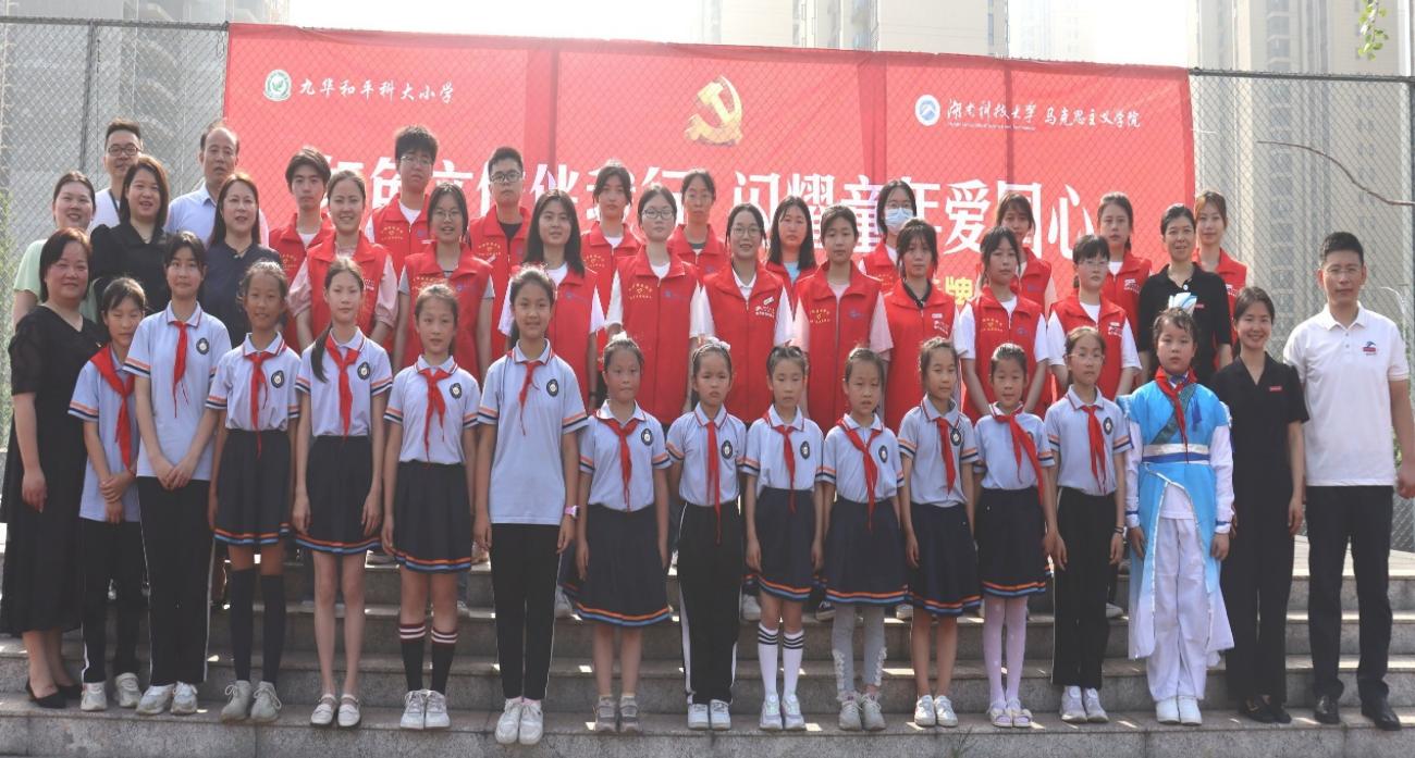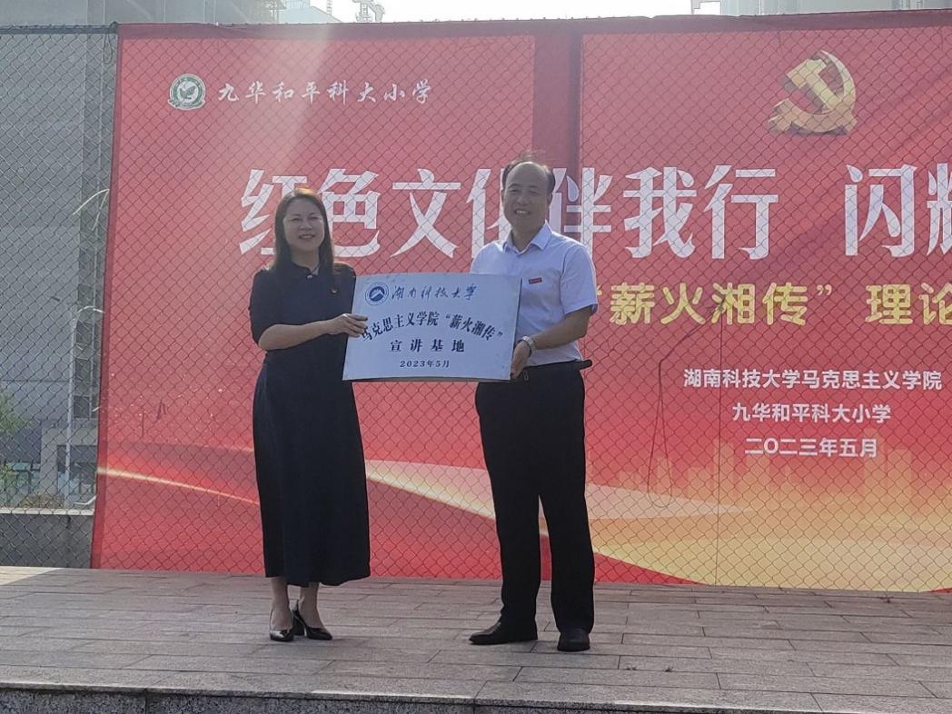 5月29日上午,304永利集团“薪火湘传”理论宣讲团与九华和平科大小学共同举行“红色文化伴我行,闪耀童年爱国心”主题宣讲活动暨“薪火湘传”理论宣讲团九华和平科大小学基地挂牌仪式。出席本次活动的有公司党委副书记刘图其、“薪火湘传”宣讲团指导老师钟声副教授、学工办主任刘哲、辅导员罗娜老师、“薪火湘传”宣讲团成员20余人、九华和平科大小学李莉董事长、九华和平科大小学三千余名师生。