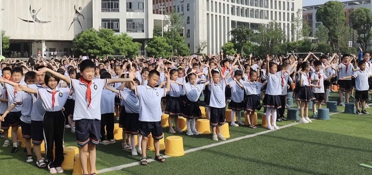▲图为小朋友学习手势舞《国家》