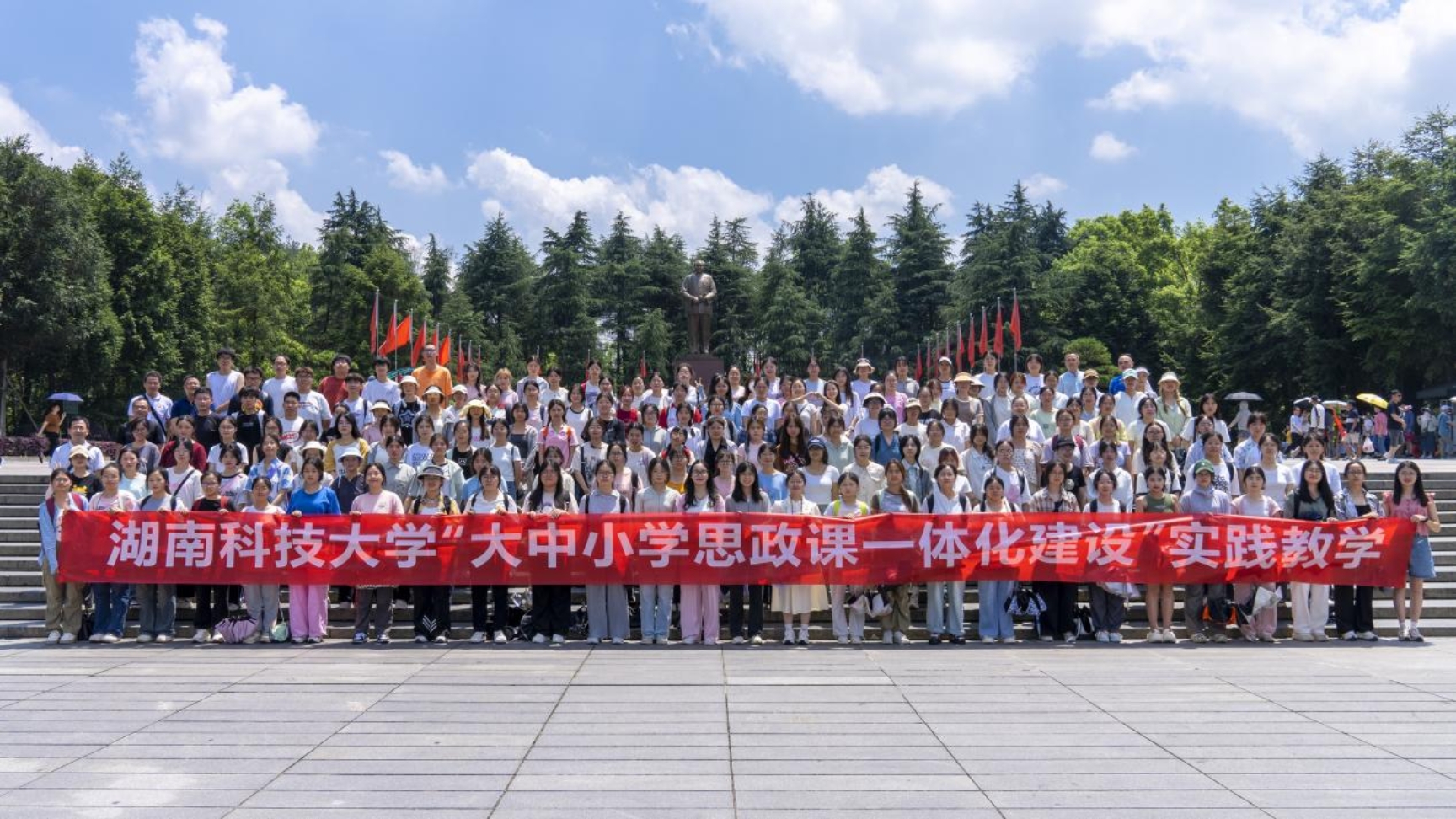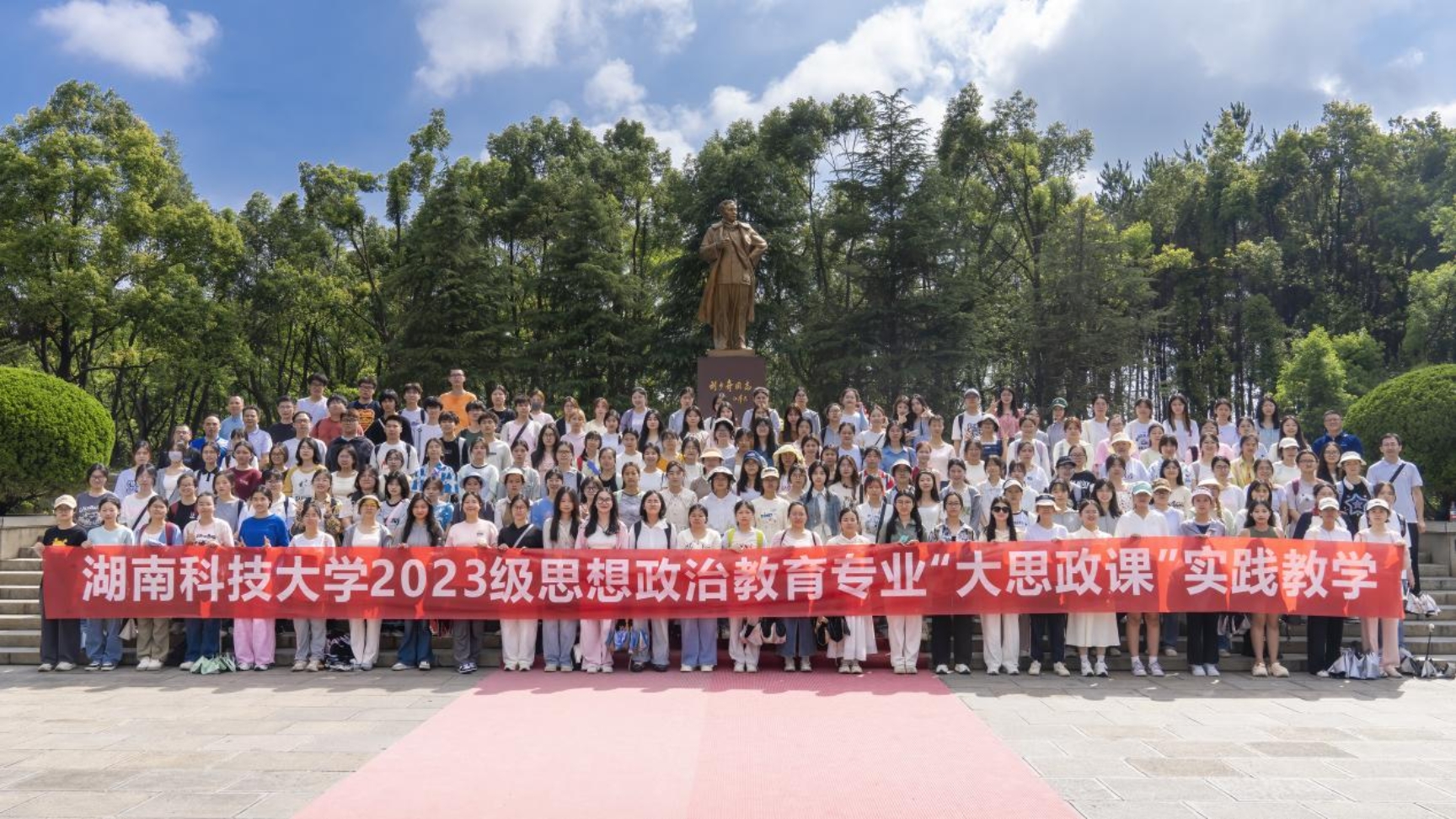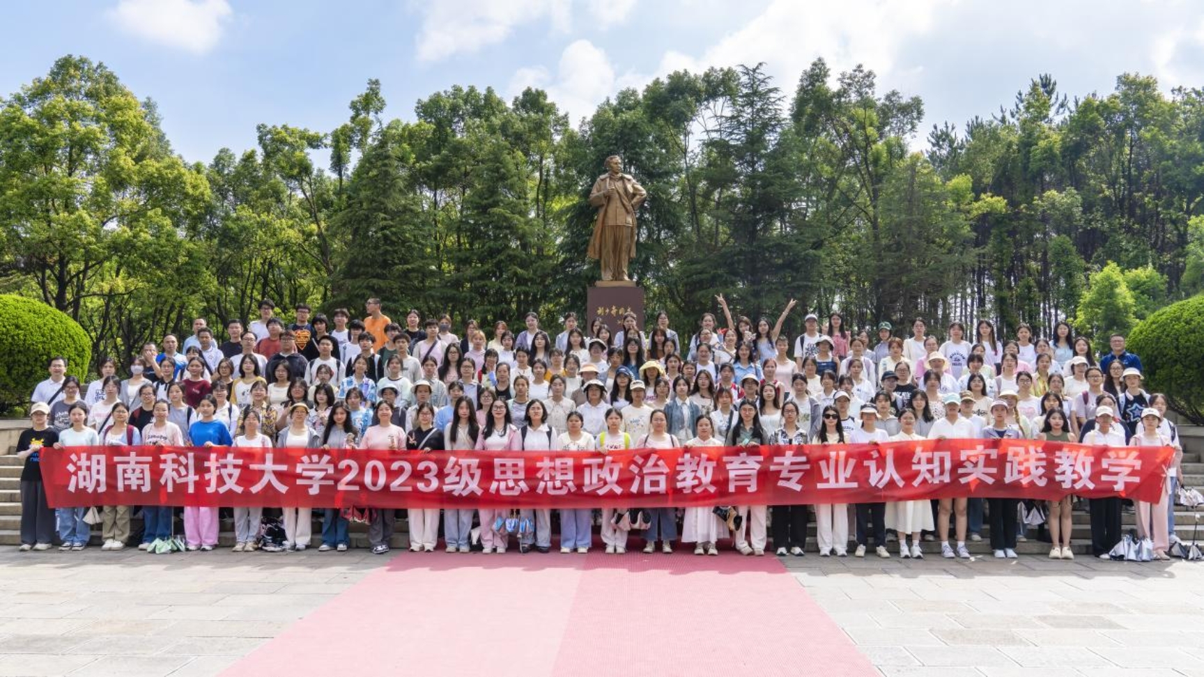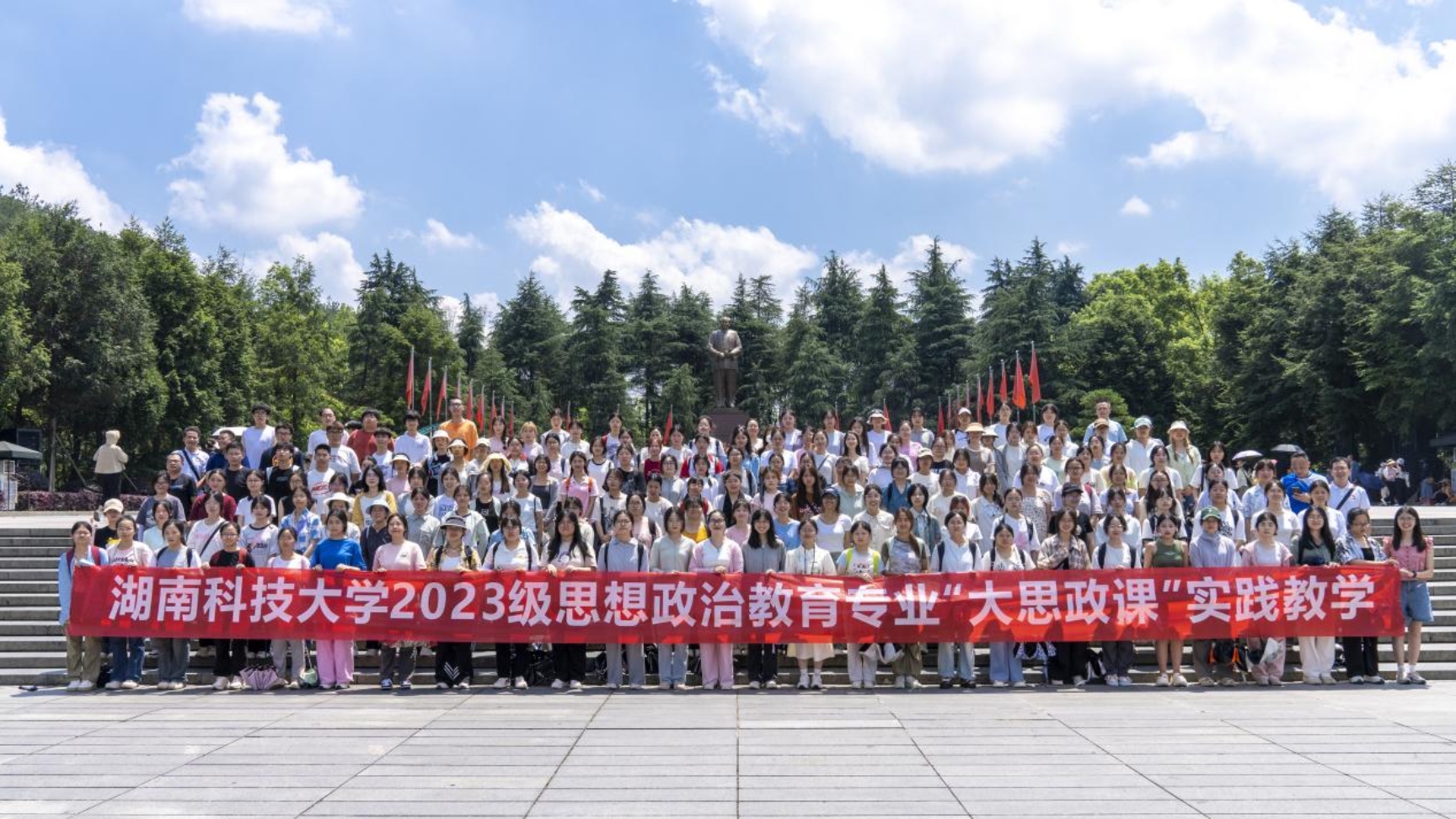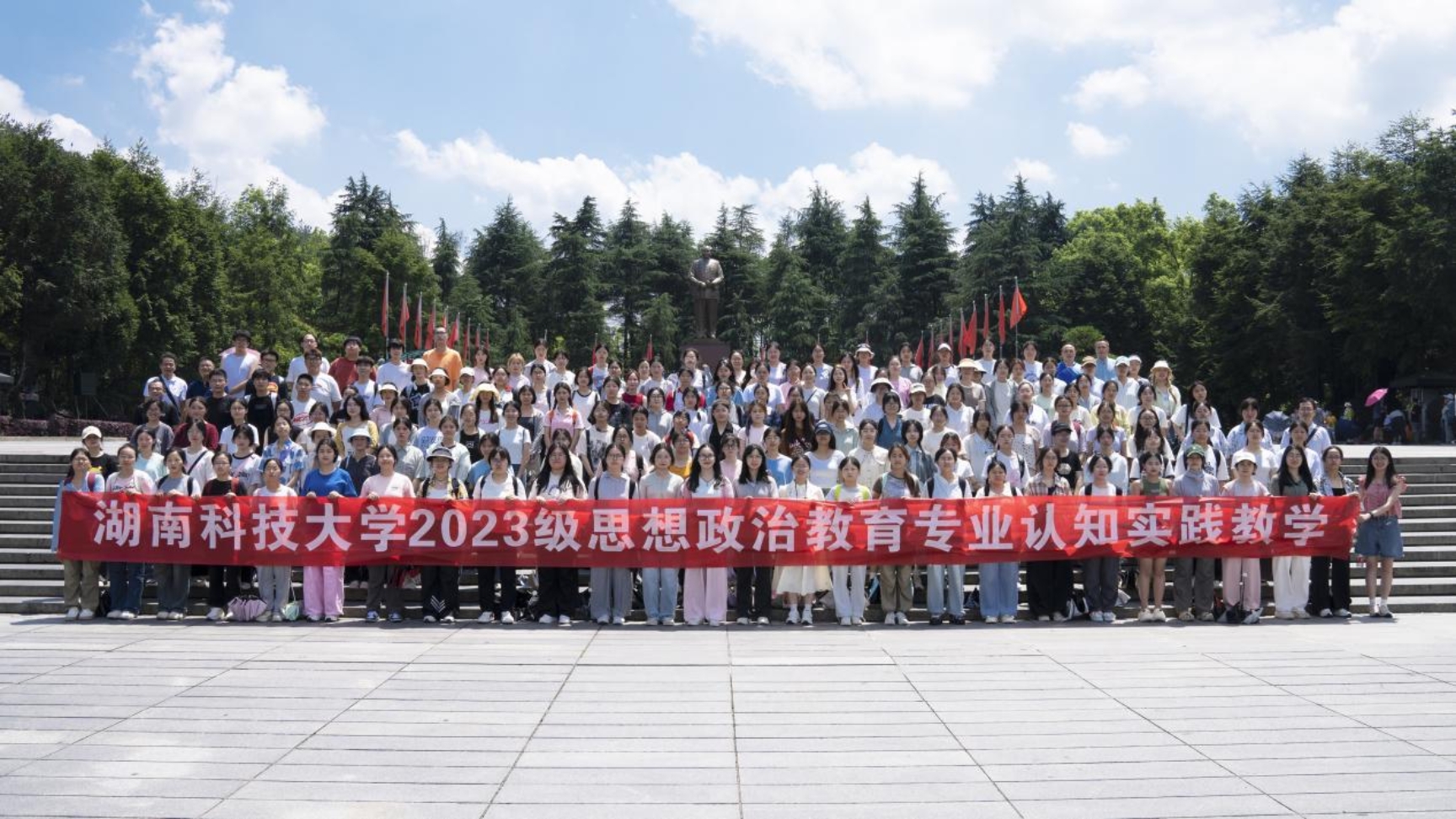 6月16日,为贯彻落实习近平新时代中国特色社会主义思想,落实习近平总书记关于运用好红色资源的重要论述,引导老员工积极主动地开展调查研究,了解国情、了解党史,巩固专业认同,提升专业素养,增强社会责任感和使命感,304永利集团2023级思想政治教育专业全体员工在思政系主任凌应生、支部书记吕开武等指导老师的带领下,赴花明楼和韶山两地开展了为期一天的“大思政课”实践教学暨大中小学思政课一体化建设实践教学。校教学督导团团长郭迎福教授全程参加。