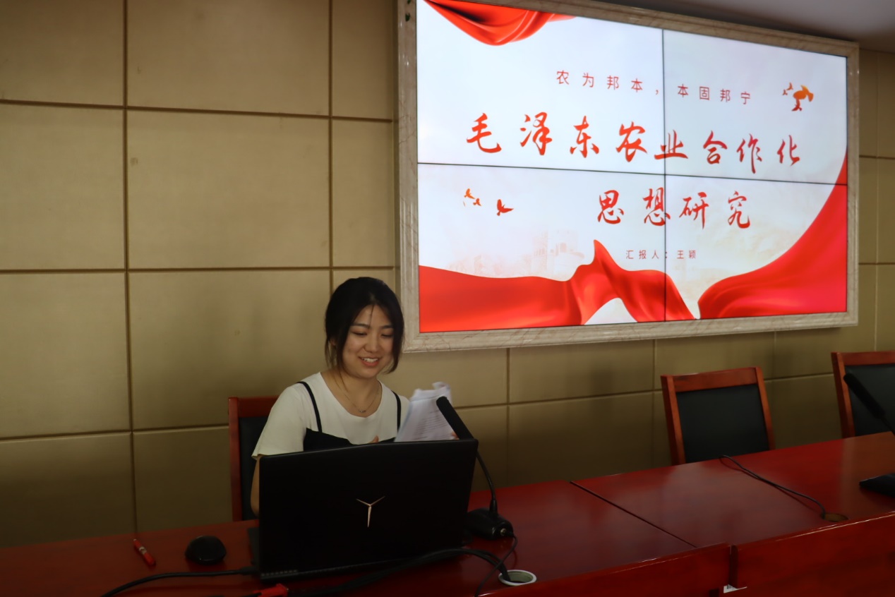 湘潭大学304永利集团王颖同学以《毛泽东农业合作化思想研究》为主题,围绕其研究背景、理论渊源与实践依据、主要内容、研究展望这四方面展开。王颖同学指出,毛泽东的农业合作化思想作为毛泽东思想中的重要组成部分,从我国当今农村的实际情况出发,实事求是地去协调与农业发展有关的各方面关系,为实现中华民族伟大复兴的中国梦做出贡献。