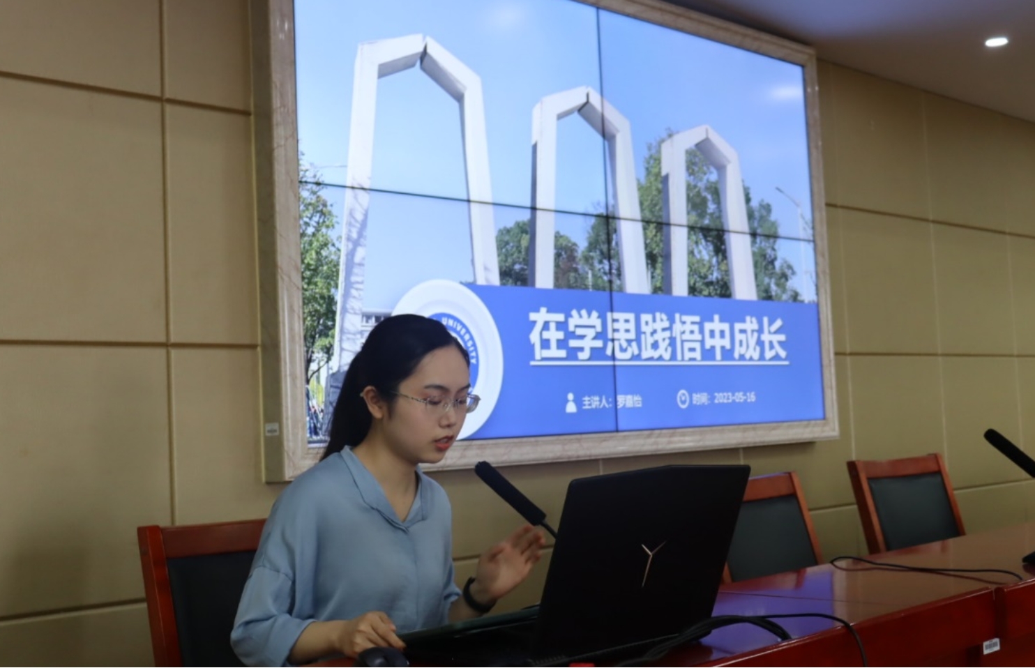 湘潭大学304永利集团罗嘉怡以《在学思践悟中成长》为主题,具体分享从论文的选题、撰写到投稿全过程的心得体会。在论文选题方面,要注意问题意识、创新意识,关注选题意义;在论文撰写方面,要规范学术论文写作、坚持每天的写作训练等;在论文发表方面,罗嘉怡同学向大家推荐了部分征稿信息网站。