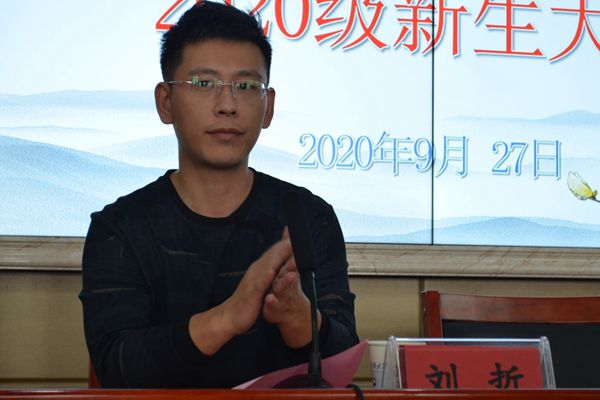 “起来,不愿做奴隶的人们,把我们的血肉筑城我们新的长城!”国歌起,全场起立,开学典礼拉开序幕。会议伊始,党委书记廖加林上台致辞,他首先对新生们的到来表示热烈的欢迎和真诚的祝福。廖加林从抗击疫情出发,肯定了青年一代在这次抗疫中的重大作用:展现了青春激昂的风采,展现了中华民族的希望。他也表示在未来的战役中,大家也将由被保护者转换为保护者,成为保卫世界和平,保卫国家安全、保障人们美好生活的中坚力量。基于青年一代担负的重大使命,他对新生们提出了“三要”:一要弘扬伟大的抗疫精神,从容面对世界风云变幻;二要勤学苦练各种本领,肩负起社会责任;三要有情怀、有底线、谱写人生新篇章。最后,他对20级新生们表达最真诚的祝福,希望他们展现青春的风采,在人生征途中绽放希望。