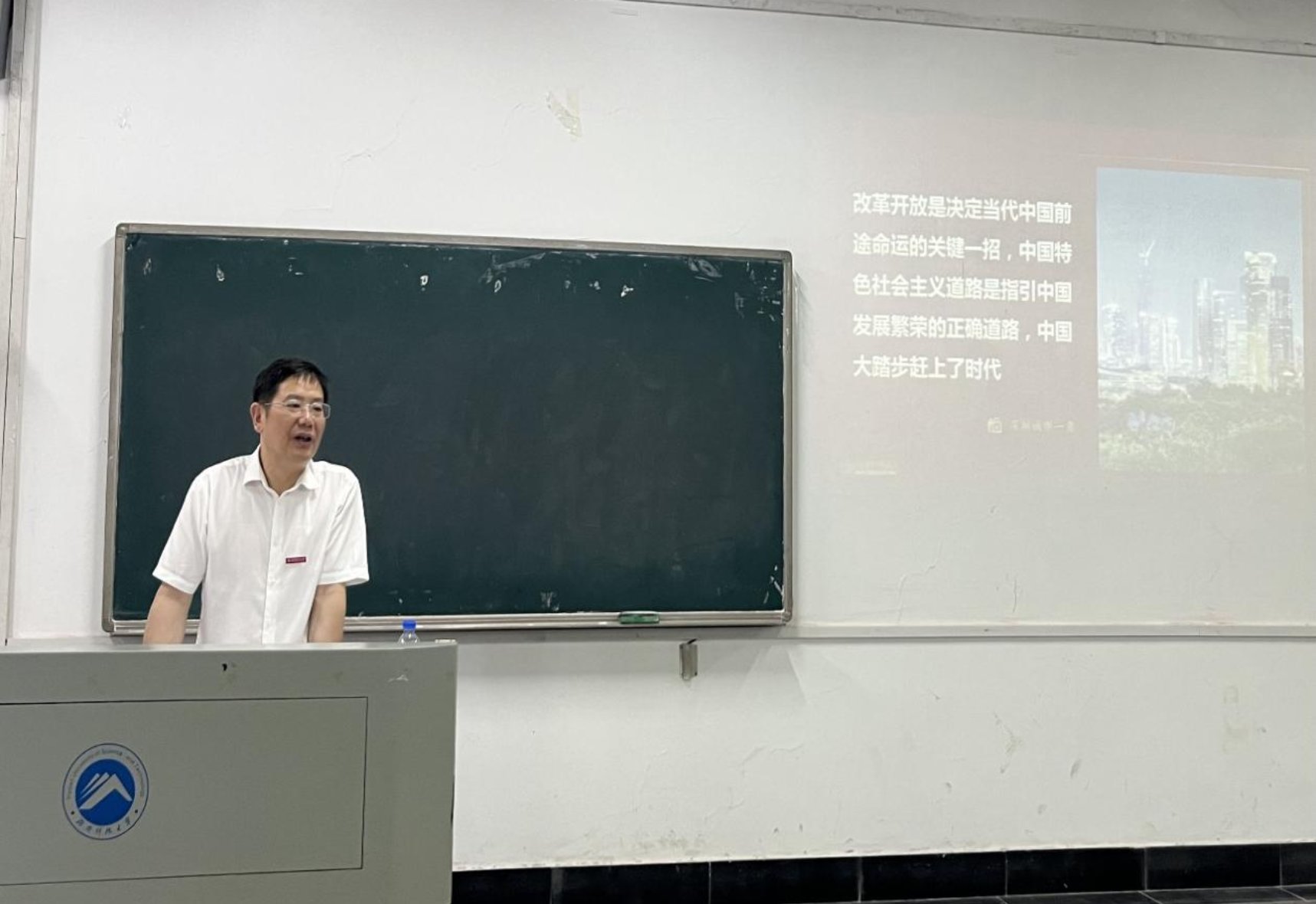 6月22日下午五六节课,公司副董事长王卫军于一教102为公司同学开讲了一堂“形势与政策”思政课,本次课堂以“镌刻史册的伟大飞跃,不可逆转的复兴进程”为主题,从党领导人民浴血奋战、自力更生、解放思想、自信自强四个方面详细展开。随着铃声响起,王卫军在同学们整齐的“老师好”声中,开始了精彩的讲课。