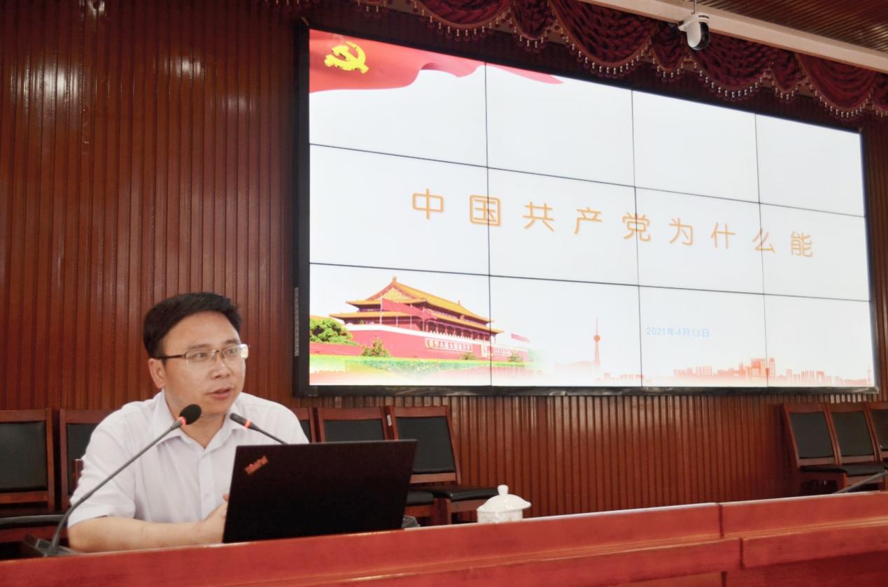 郭时印将“中国共产党为什么行”这个问题分为“科学的理论指导”“坚定的理想信念”“强大的组织优势”“坚实的群众基础”“彻底的自我革命”五个部分进行详细讲解。在谈到“科学的理论指导”时,他提到要始终高举马克思主义旗帜,不断开辟理论发展的新境界,始终坚持思想建党、理论强党。接着,郭时印结合新冠疫情防疫中中共党员不惧牺牲,敢为人先的事实和案例,指出中国共产党具有严密的组织体系,为国家、人民树立起一道坚实的防线。最后,郭时印指出勇于自我革命是中国共产党最鲜明的政治品格,这也是中国共产党带领人民将国家建设得繁荣昌盛的原因之一。