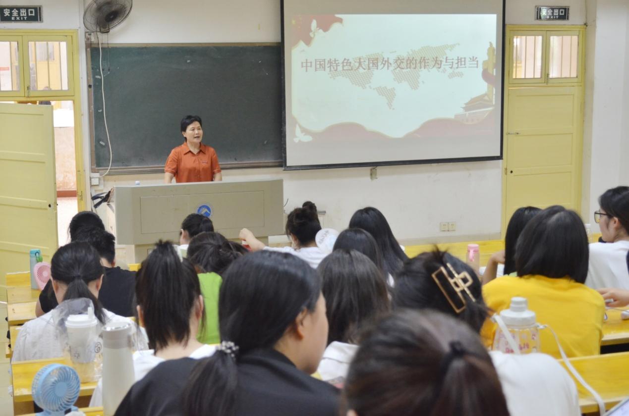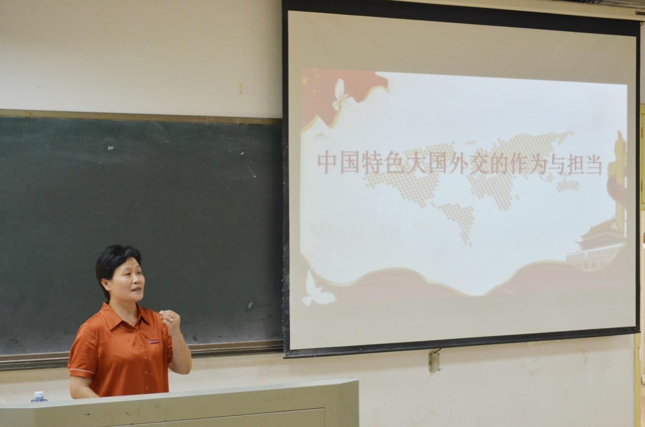 6月28日五六节课,副董事长李琳于十教东附楼301教室给18级文学专业的员工上了一堂关于中国特色大国外交的作为与担当的“形势与政策”专题思政课。
