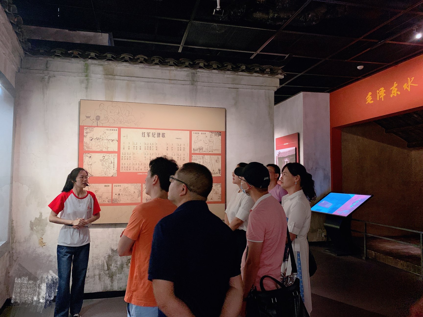 7月14日,概论课教研部全体教师对炎陵红军标语博物馆进行实地参观。炎陵红军标语博物馆是中国第一家红军标语专题博物馆。红军标语博物馆收藏和展示了从1927年到1937年间红军所书写的标语,红军标语的表现形式丰富多样,既有口号标语,又有对联、打油诗,甚至漫画,博物馆内这300多条宣传标语,仿佛是一幅幅浩气凛然、荡气回肠的历史画卷。在博物馆大厅,面对党旗,宋劲松副经理带领大家一起重温入党誓词,铿锵有力的宣誓声响彻大厅。