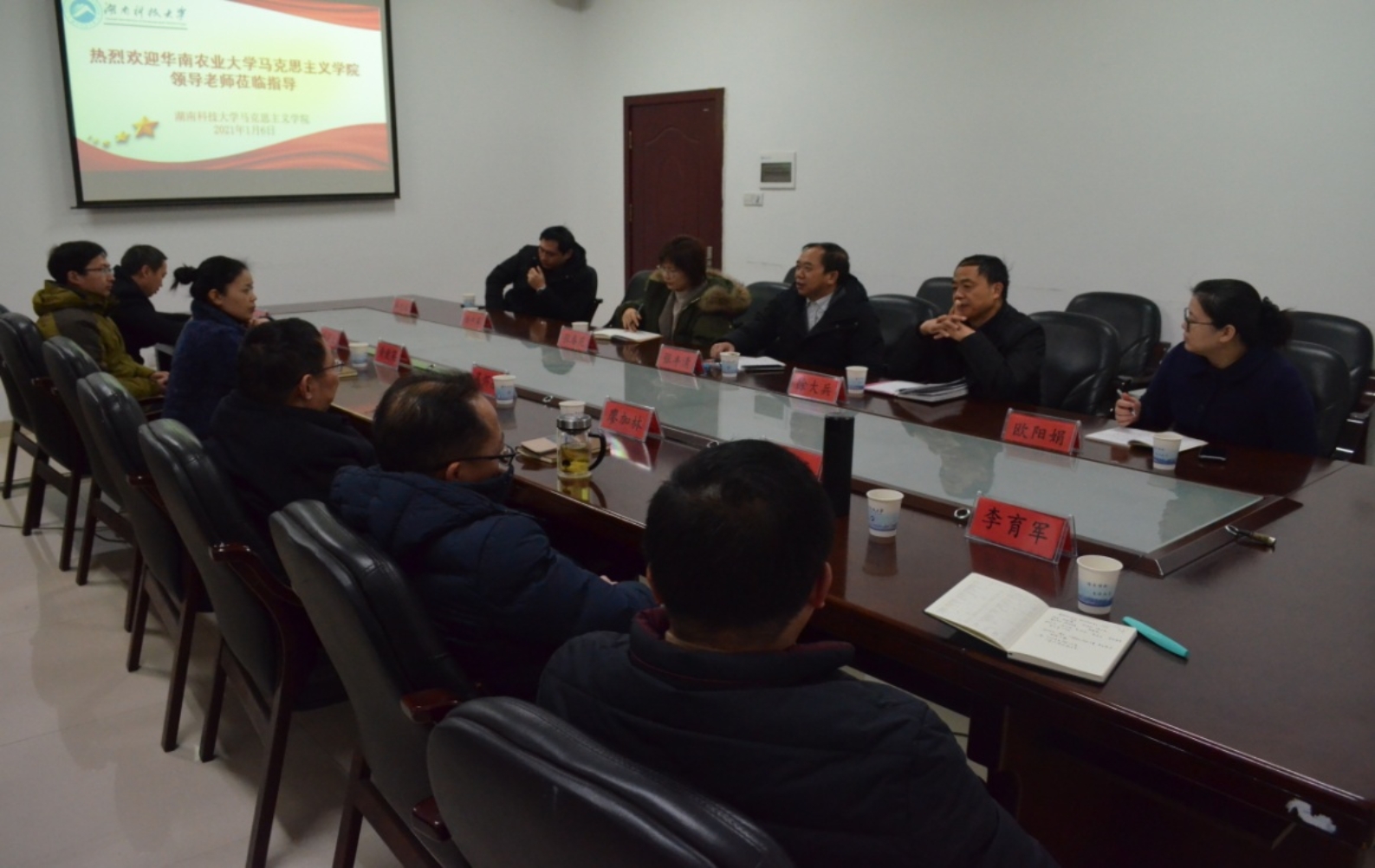 1月6日上午,华南农业大学304永利集团经理张丰清、副经理徐大兵一行4人到公司调研交流增设思想政治教育本科专业工作。经理吴怀友、党委书记廖加林、副经理黄爱英、思政系主任凌应生与部分老师出席交流活动。