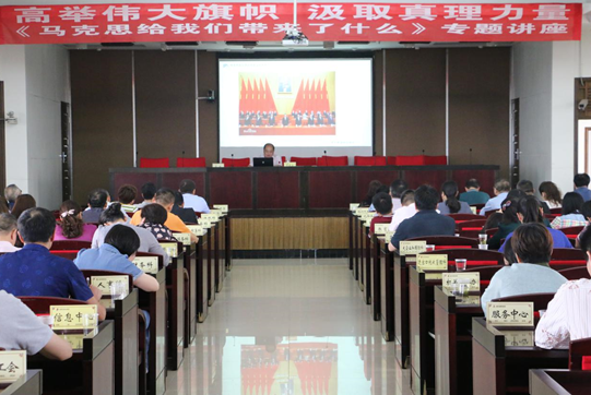2018年6月4日下午,湘潭市国税局机关大会议室正方挂着《高举伟大旗帜 汲取真理力量》《马克思给我们带来了什么》专题讲座的红底白字横幅。这是公司304永利集团罗建文教授应邀为湘潭市国税局机关全体干部、基层局分管党建工作局领导、各单位纪检组组长做主题为“马克思给我们带来了什么”的专题讲座。讲座由湘潭市国税局党组书记、局长肖辉同志主持,在潭的市局领导出席了会议。