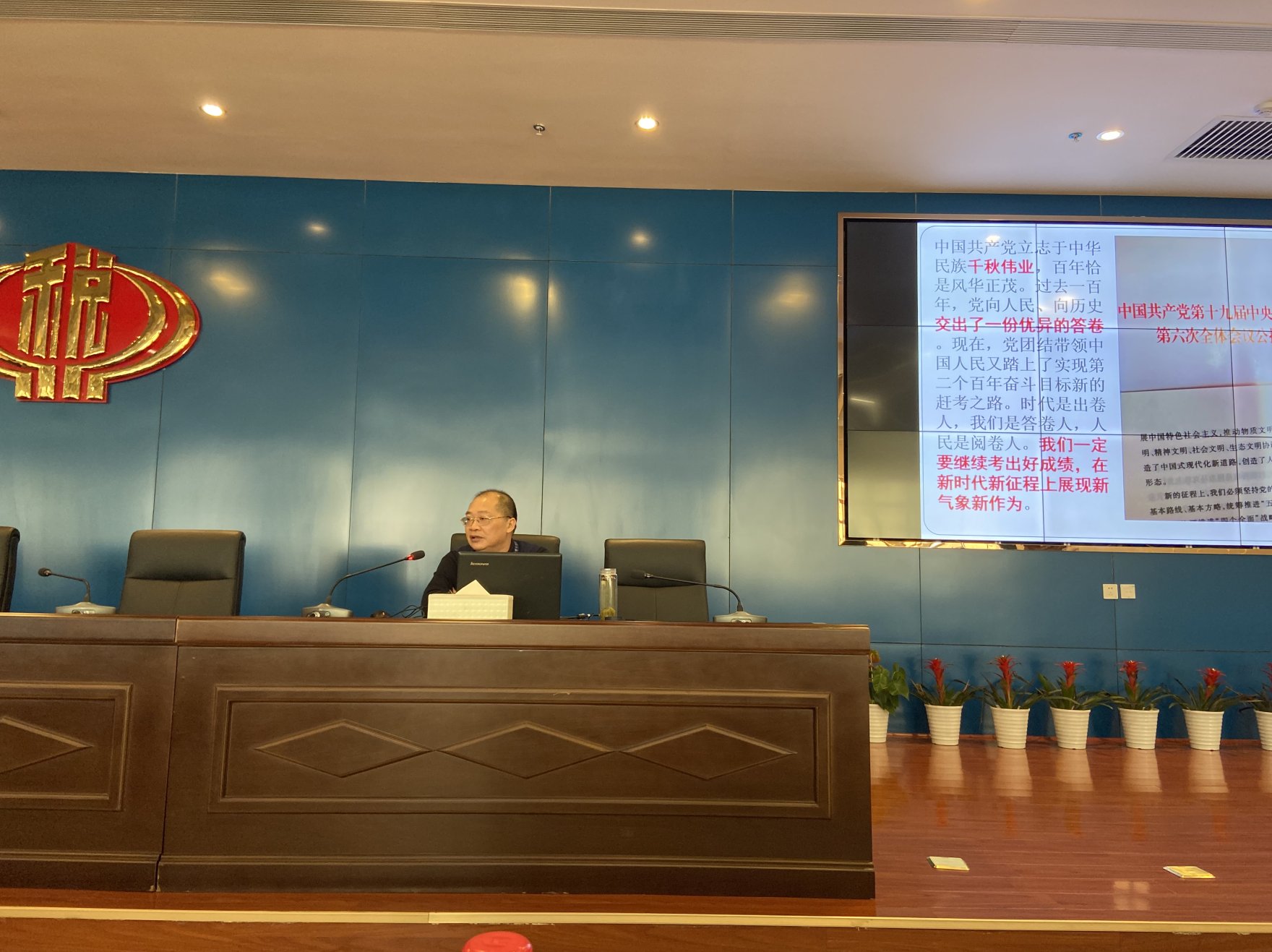 局领导潘志勇同志在总结讲话时,对罗建文教授的辅导报告给予了充分肯定。潘局长说,罗教授的报告既有丰富的党史资料和党的文献材料,让我们从事实际工作的同志耳目一新,也有深刻的理论阐释和时代背景的现实分析,使我们这些非理论工作者受益匪浅;要求全体与会同志,继续深入学习六中全会精神,“从党的百年奋斗中看清楚过去我们为什么能够成功、弄明白未来我们怎样才能继续成功”,以实际行动和优异成绩向党的二十大献礼。