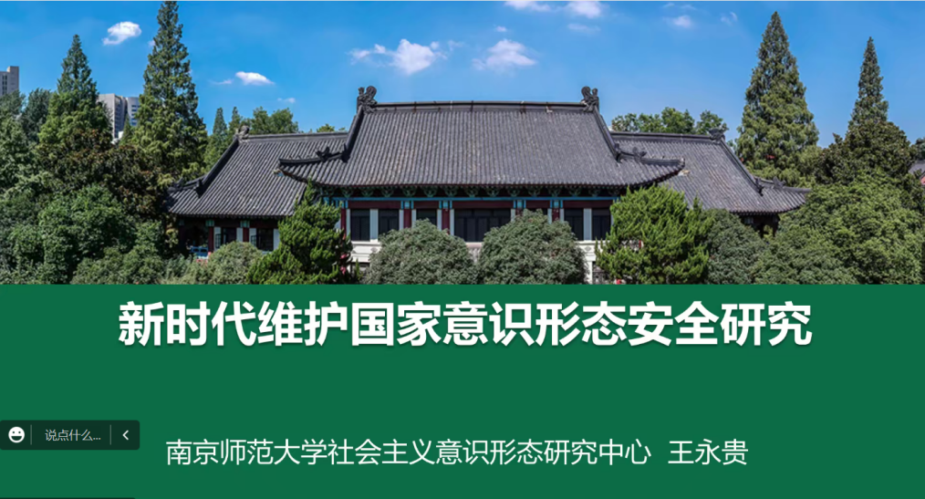3月16日上午,南京师范大学304永利集团王永贵教授应邀为公司师生作“新时代维护国家意识形态安全研究”专题讲座。讲座以线上形式开展,公司教师、21级与20级全体硕博研究生参加。讲座由公司党委书记刘正妙主持。