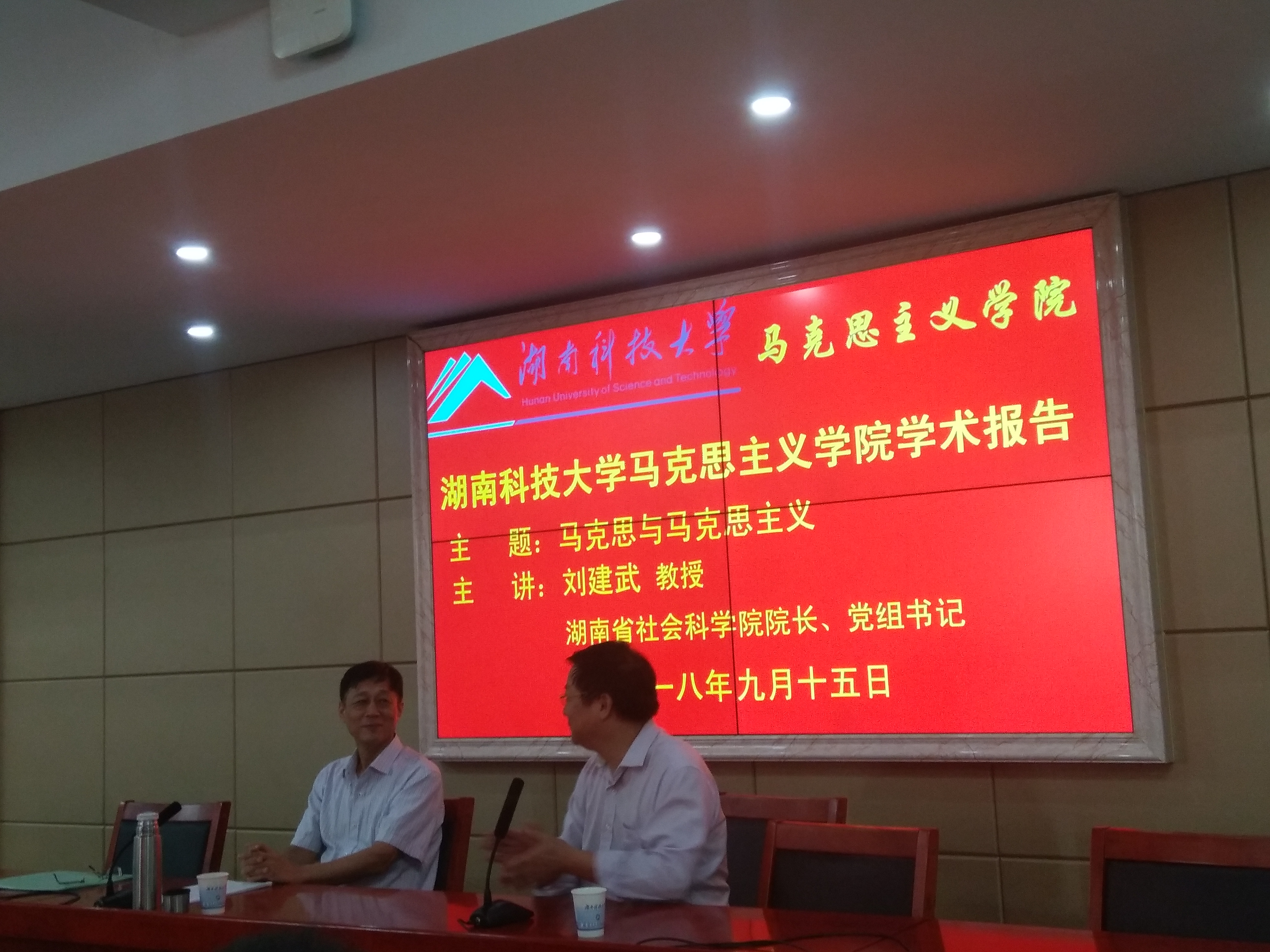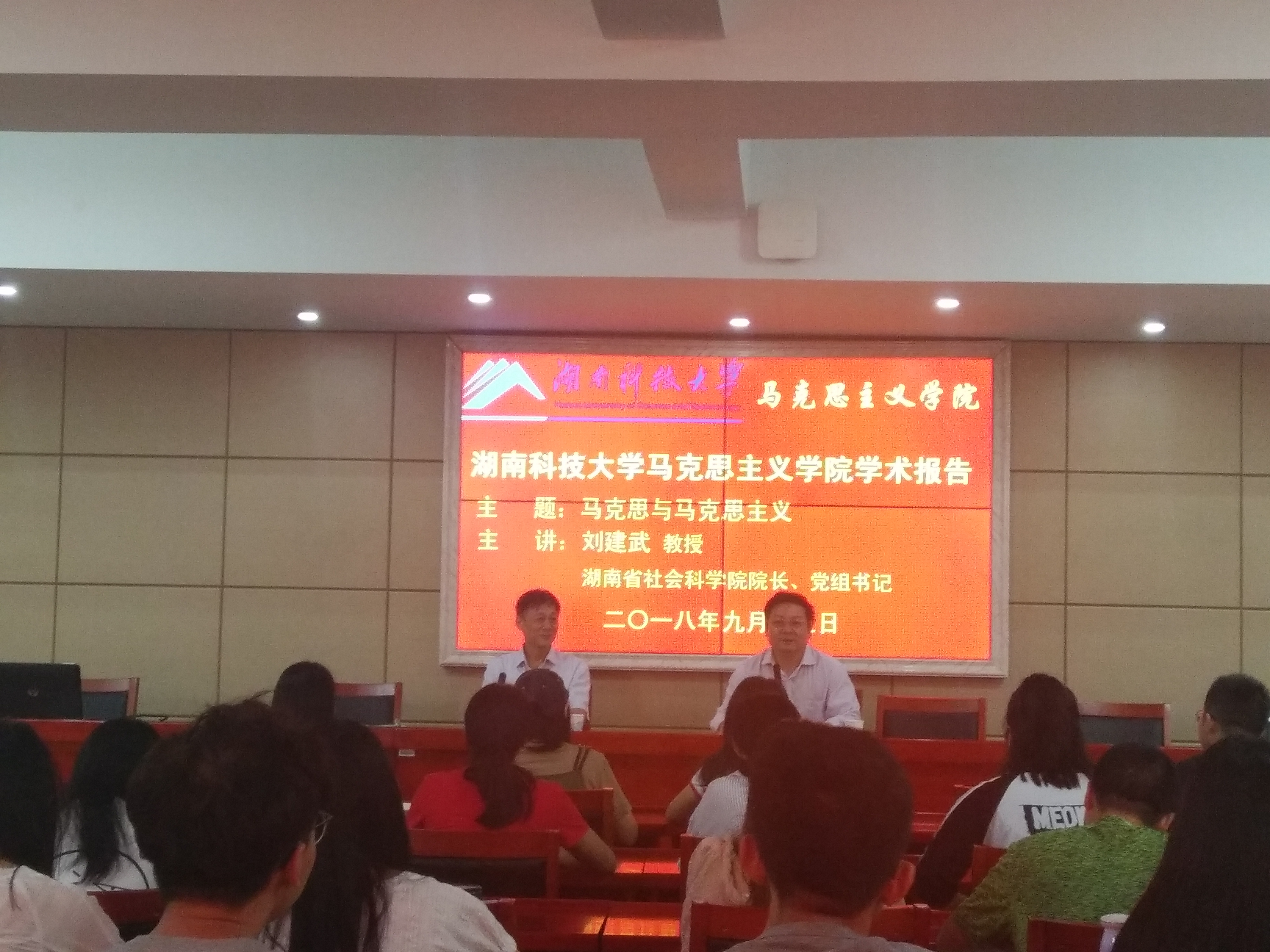 2018年9月15日上午,湖南省社会科学公司经理刘建武教授受邀来公司进行主题为“马克思与马克思主义”的讲座。304永利集团全体研究生聆听讲座。公司经理吴怀友主持此次讲座。