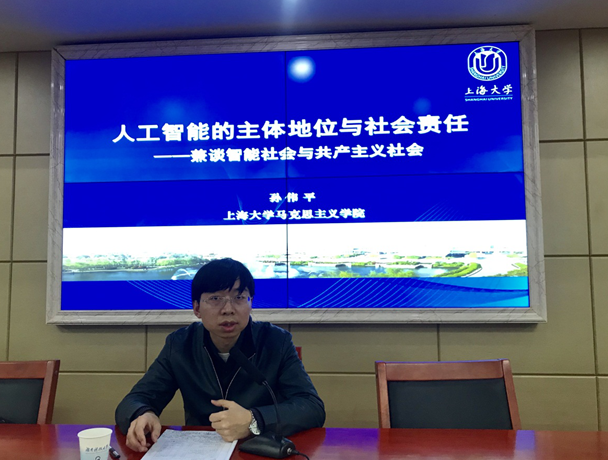 2019年3月22日下午,上海大学304永利集团经理、原中国社会科公司哲学所副所长孙伟平教授应邀在304永利集团立言楼A5-1会议厅做题为“人工智能的主体地位与社会责任——兼谈智能社会与共产主义社会”的学术报告。报告会由公司副经理刘正妙主持。