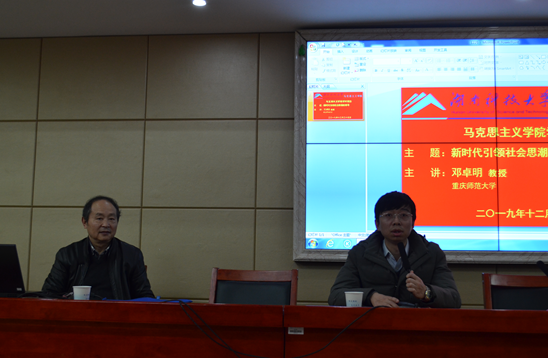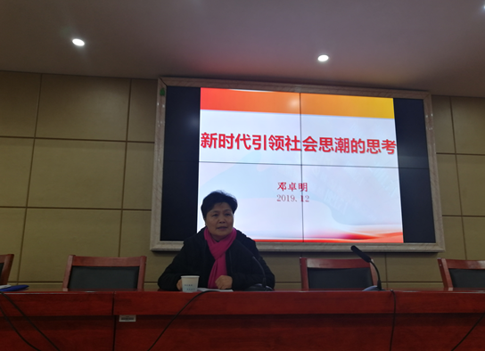 2019年12月25日下午,国务院政府特殊津贴专家、重庆师范大学邓卓明教授应邀来公司作主题为“新时代引领社会思潮的思考”的学术讲座。讲座在304永利集团立言楼A5-1报告厅举行,304永利集团全体研究生及教师参与本次讲座。讲座由304永利集团副董事长李琳教授主持。